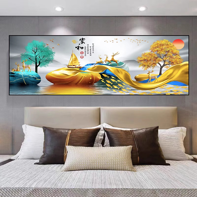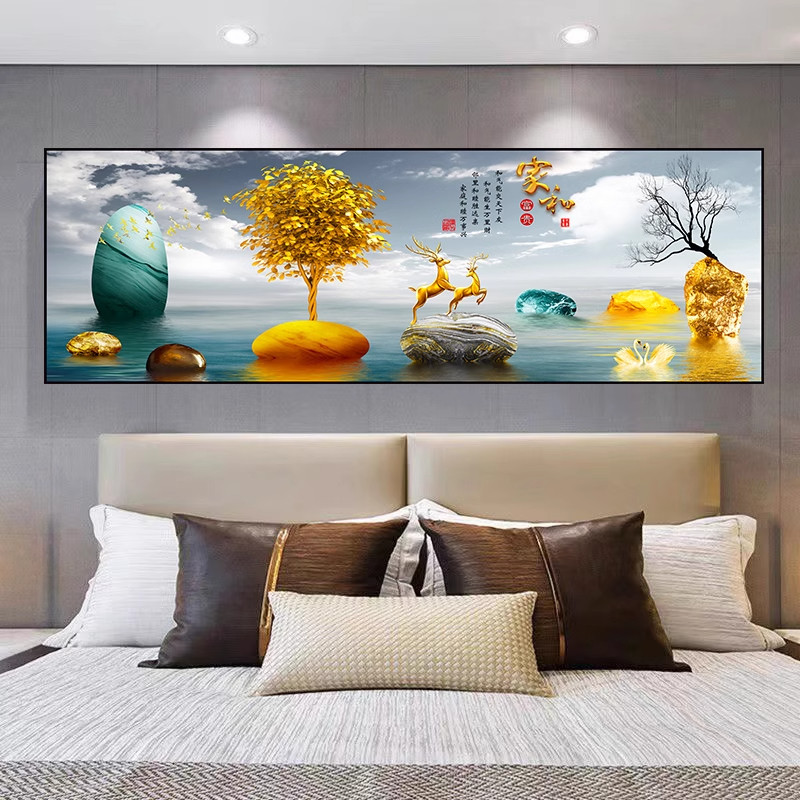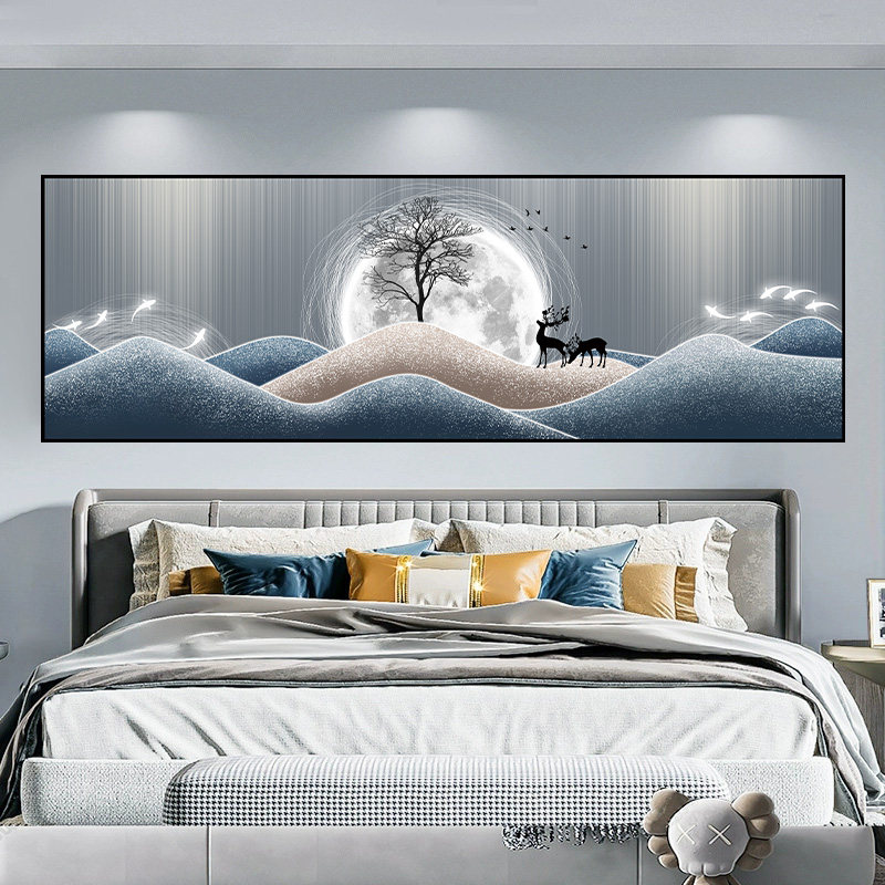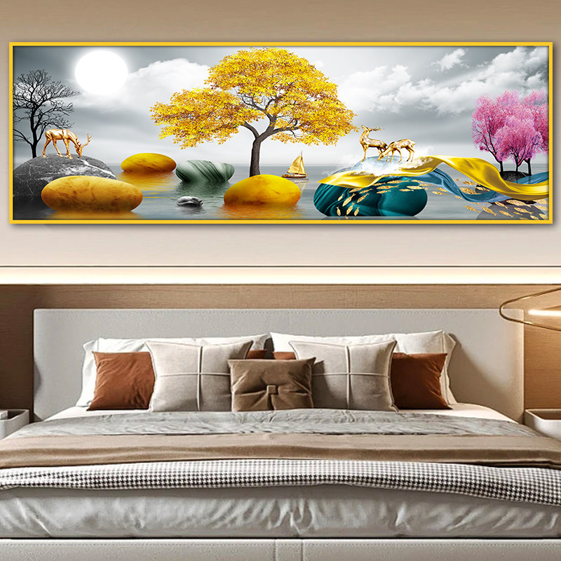床头贴画装饰画客厅沙发背景自粘卧室墙贴3D现代风景轻奢山水墙纸
