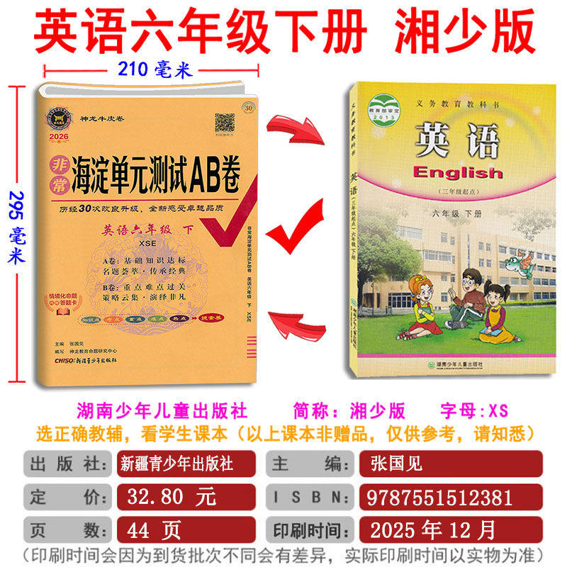 2026春新版AB卷小学英语六年级下册湘少版XS湖南少儿版海淀单元测试AB卷期中期末测试卷6年级上册 天天练 海淀单元测试AB卷
