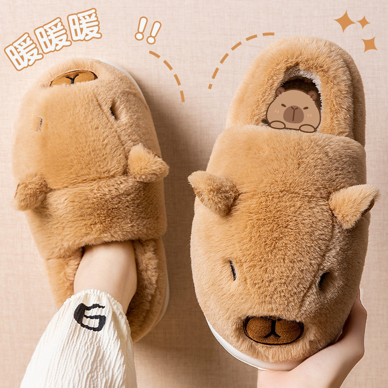 卡皮巴拉棉拖鞋女士2025新款冬季加绒保暖家居室内情侣外穿棉鞋男