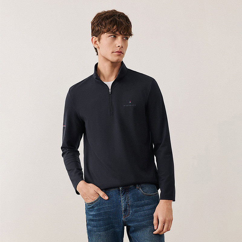 [磨毛]Navigare意大利小帆船长袖T恤男秋冬新款半拉链体恤打底衫
