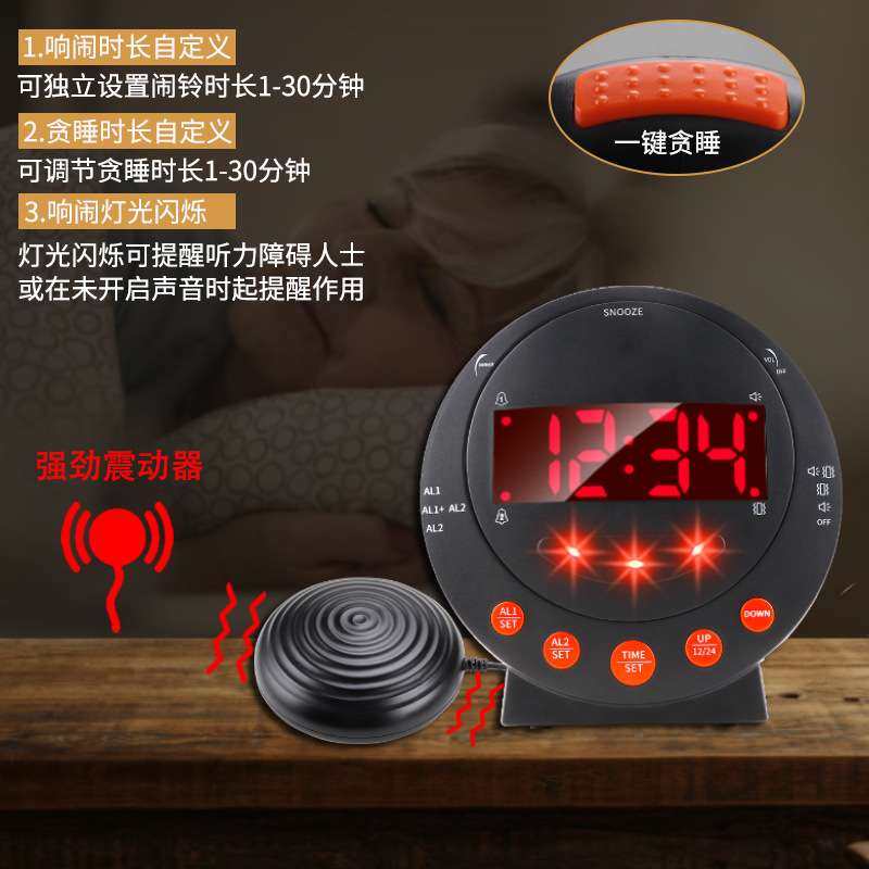 新款创意多功能带门铃振动提醒时钟LED电子数显桌面台钟震动闹钟