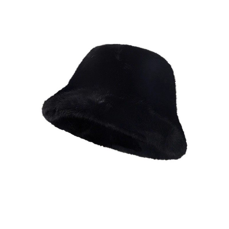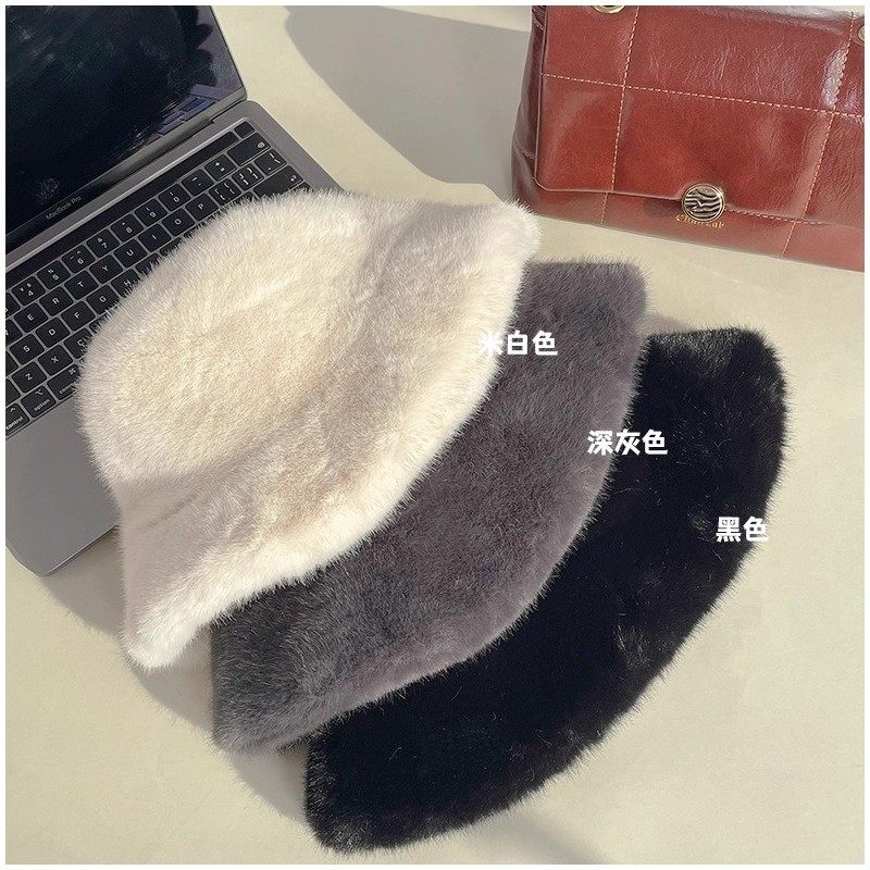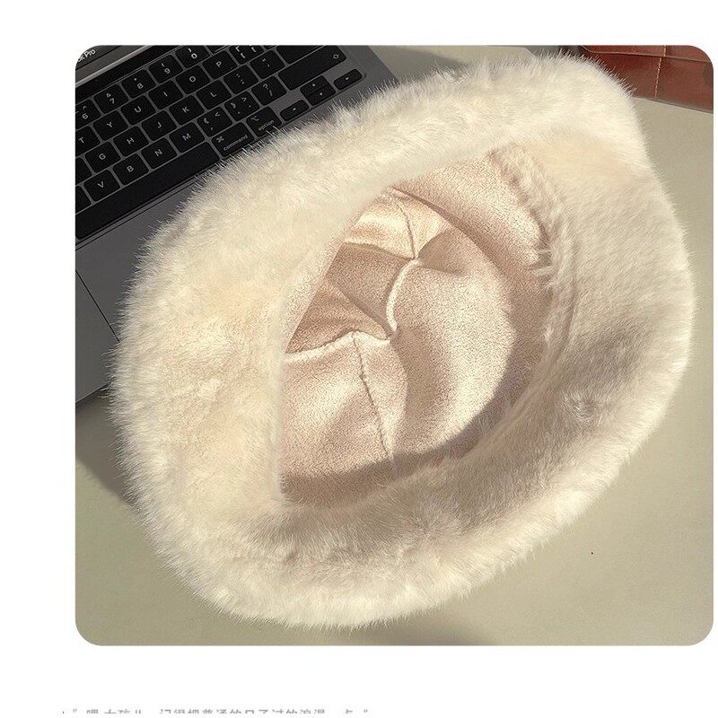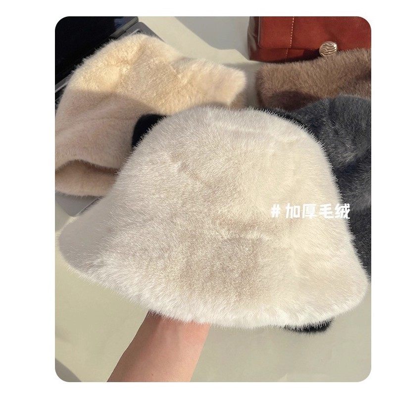 白色毛绒帽子渔夫帽女冬季可爱网红保暖加绒显脸小兔毛水桶大头围