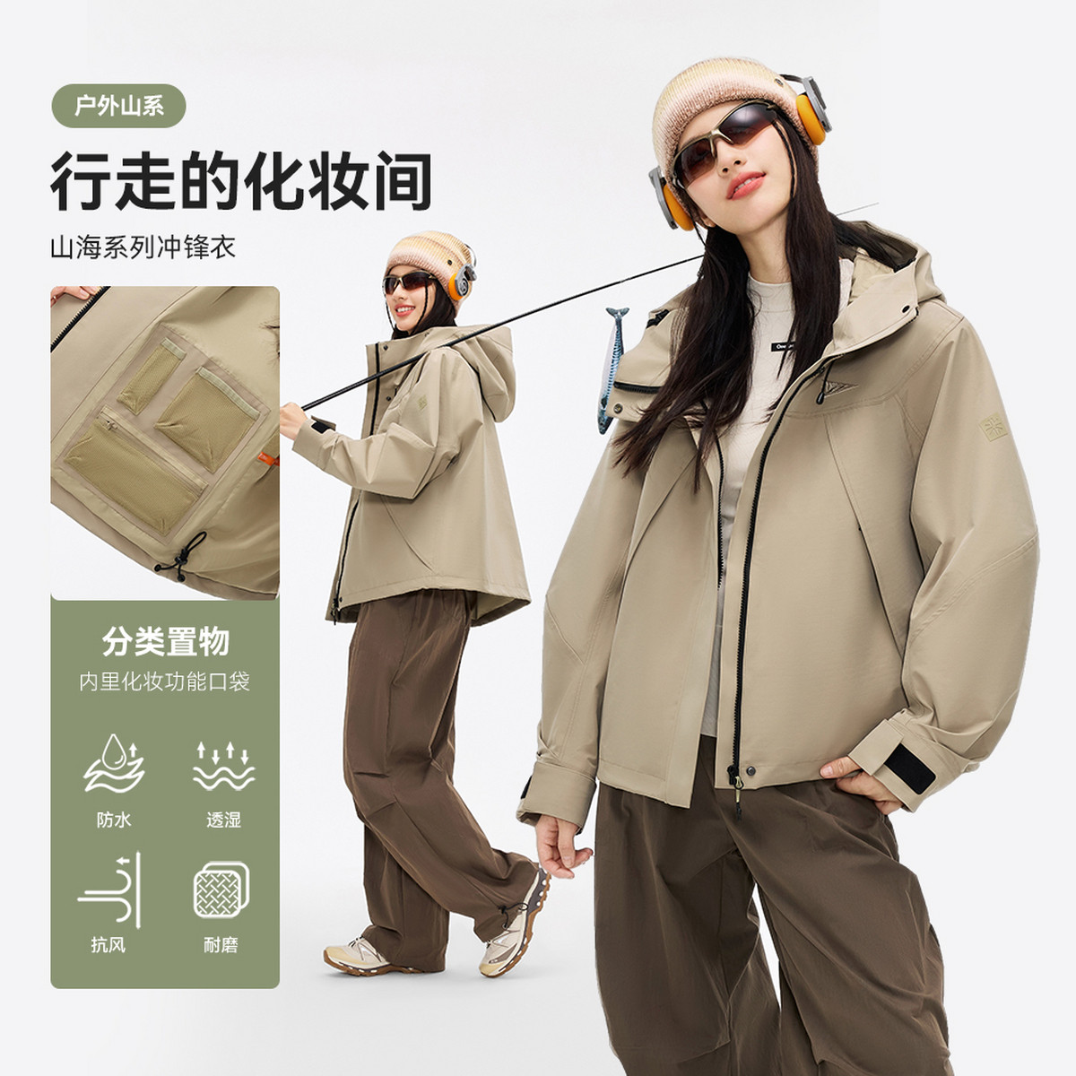 骆驼山海2.0夹克女装2025新款春夏三防户外登山服休闲连帽外套男