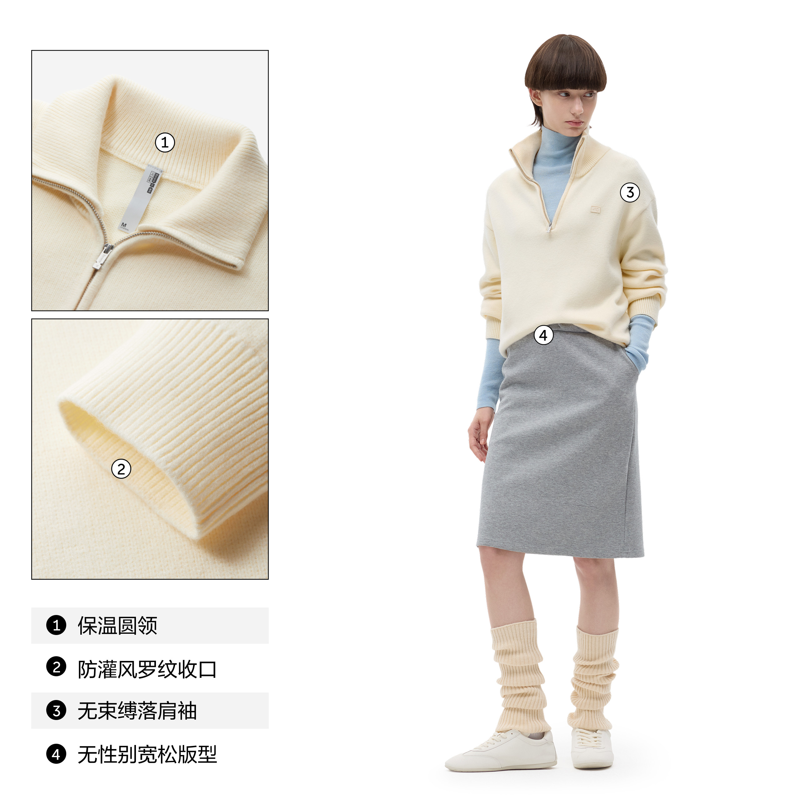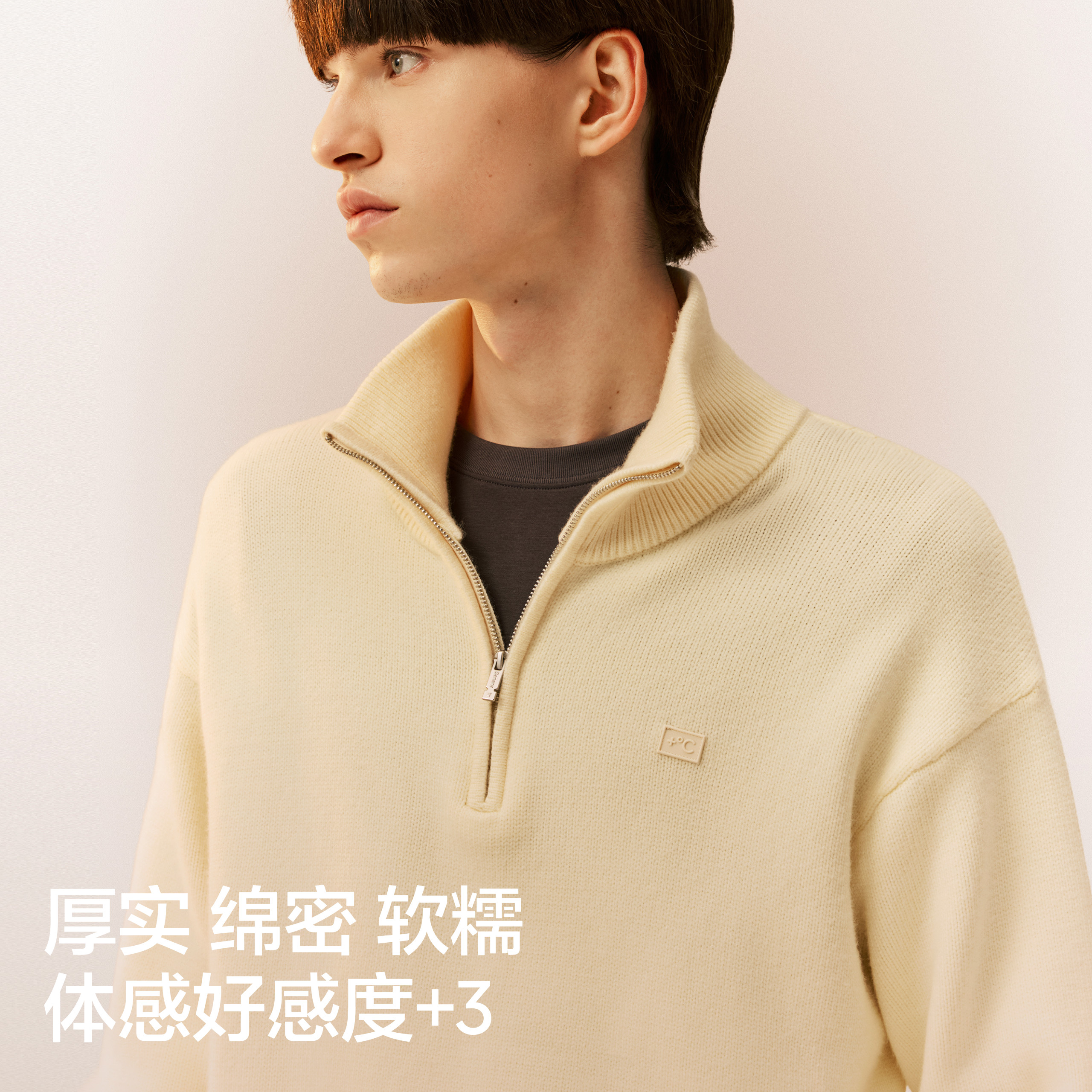 蕉内热皮502++男女同款锁温半拉链套头毛衣柔软保暖宽松针织衫
