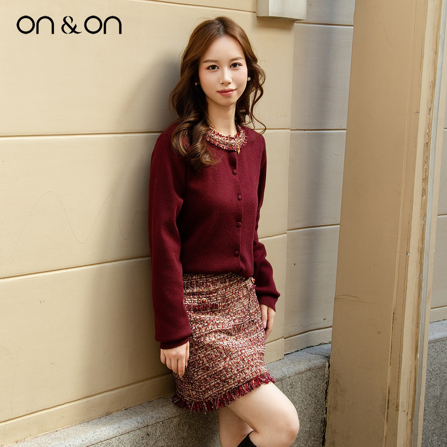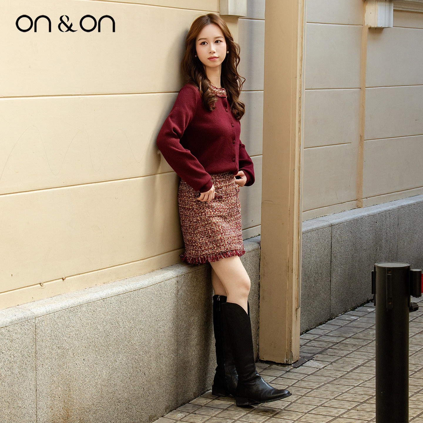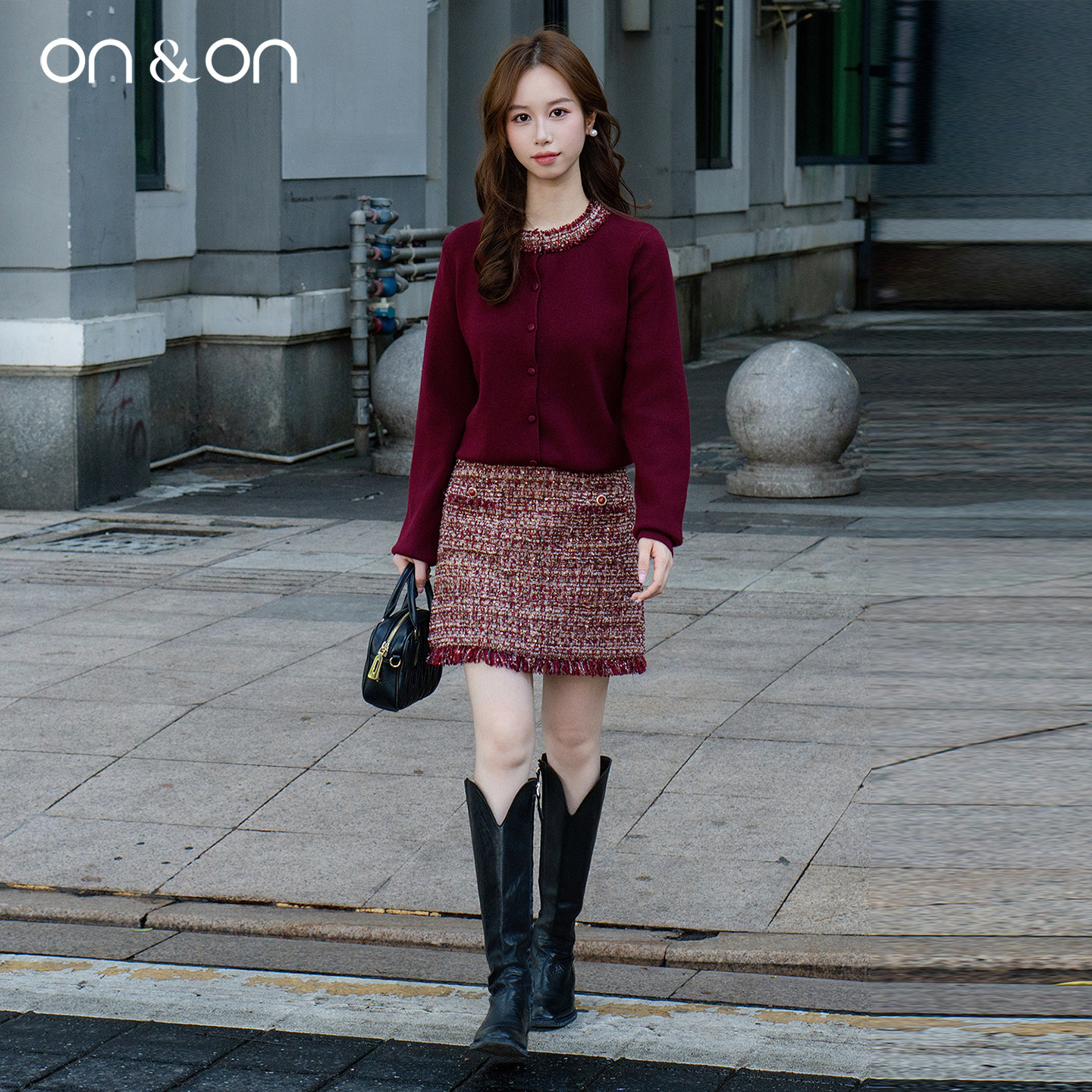 ON&ON/安乃安2025冬季新款韩系流苏圆领针织衫+粗花呢半裙套装女