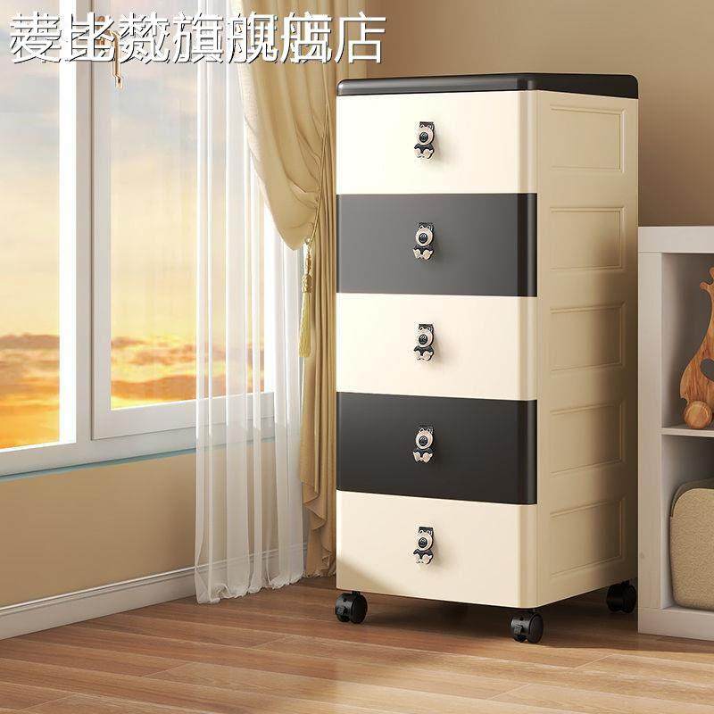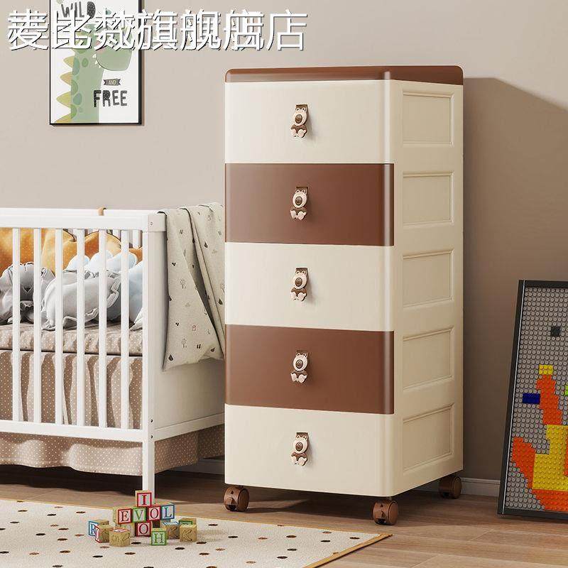 麦比梵儿童卡通收纳柜抽屉式玩具储物柜子宝宝衣物整理柜塑料衣柜加厚款摆件垫垫床笠拉车