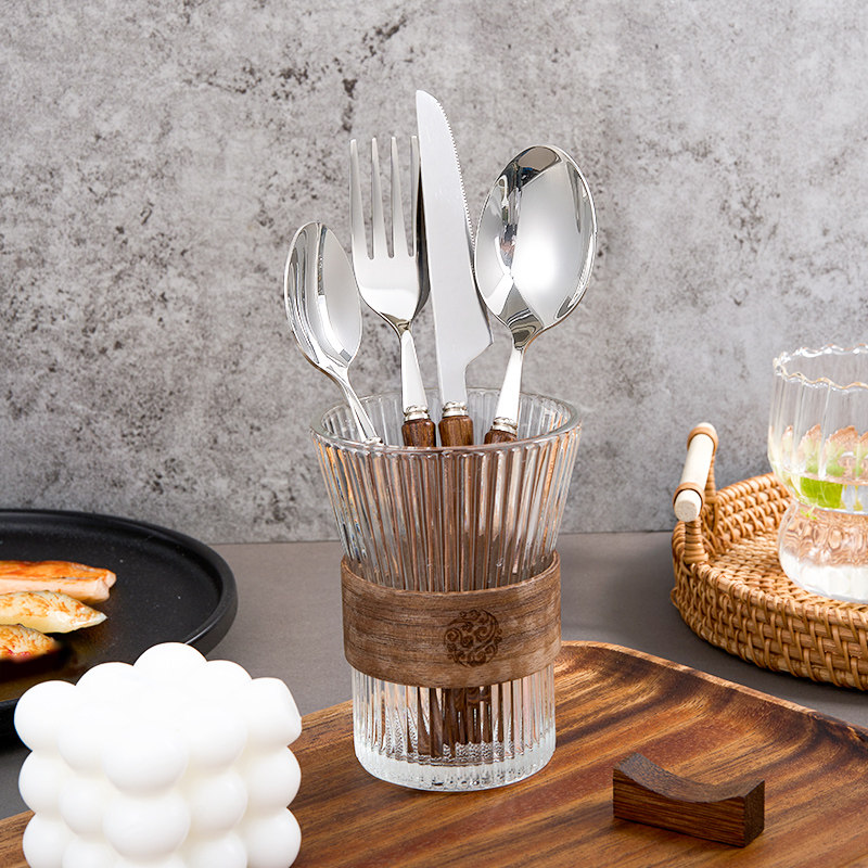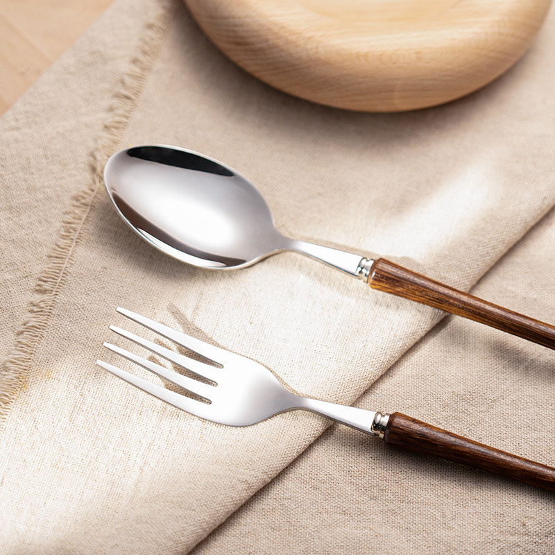 木柄勺子不锈钢加厚家用高档精致汤匙鸡翅木长柄叉子喝汤甜品勺