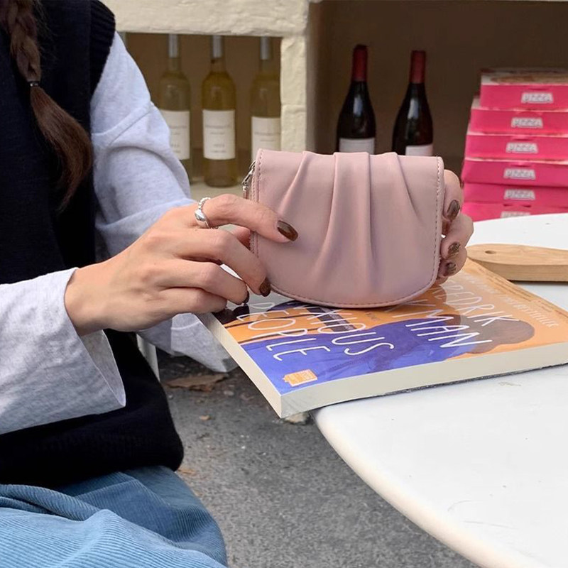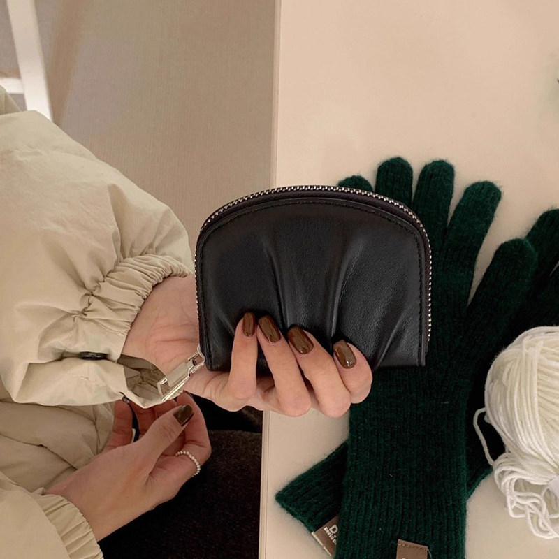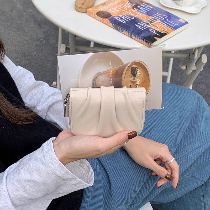 高颜值短款小钱包女褶皱小巧便携精致多功能大容量学生卡包零钱包