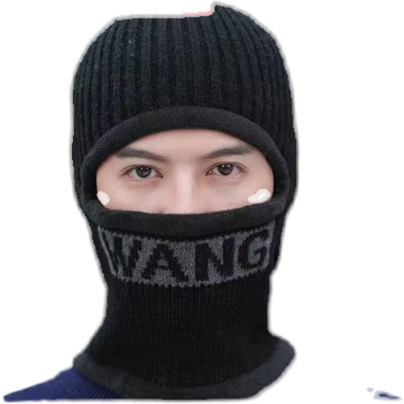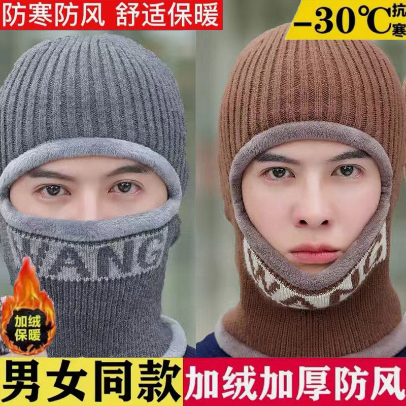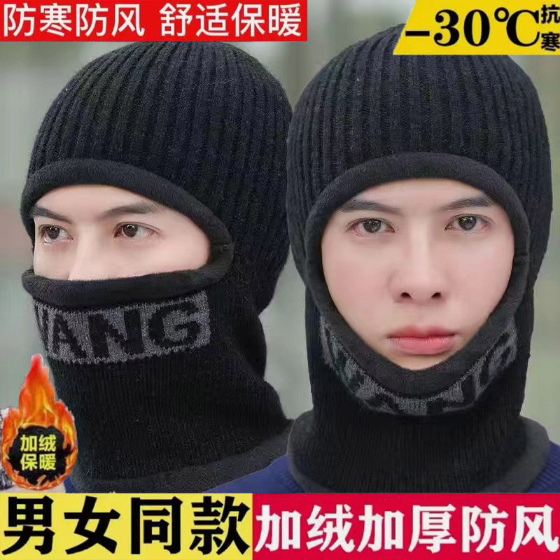 帽子男士冬天保暖头套毛线帽围脖一体冬季骑车防风防寒棉帽针织