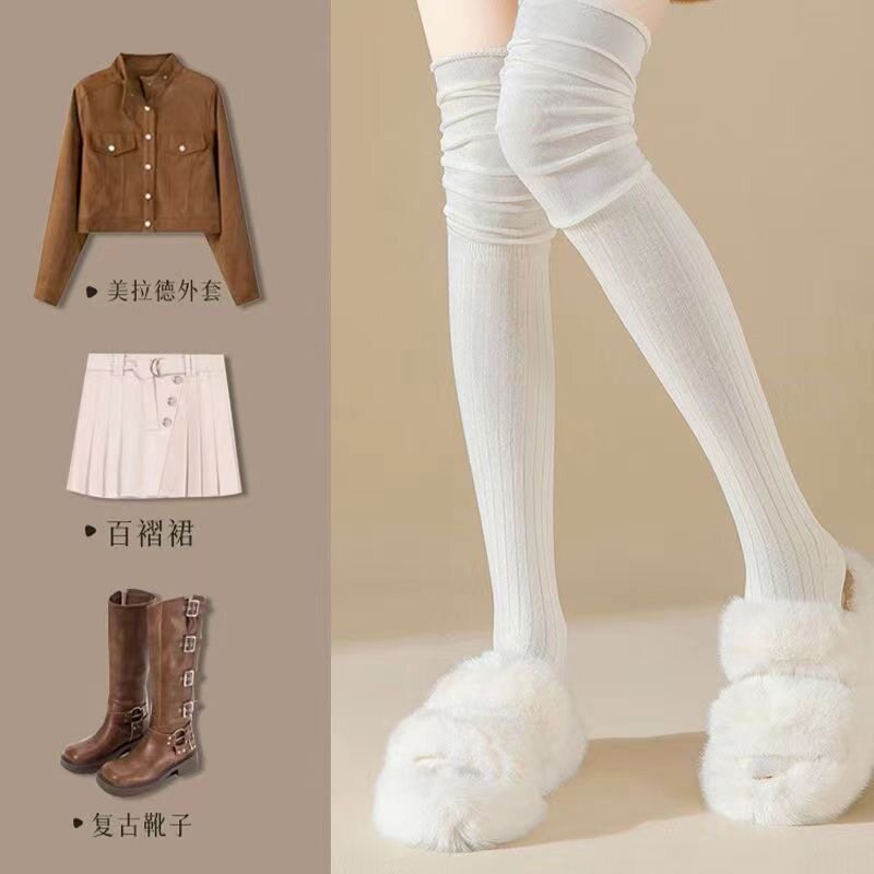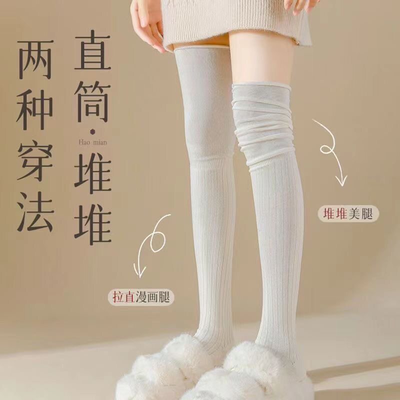 长靴袜子女过膝款春秋美拉德堆堆袜大腿袜防下滑白色长筒靴袜防滑