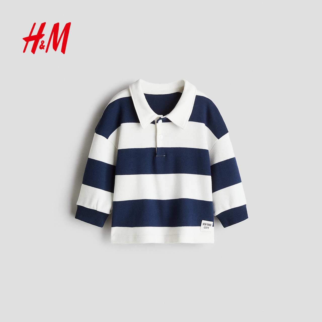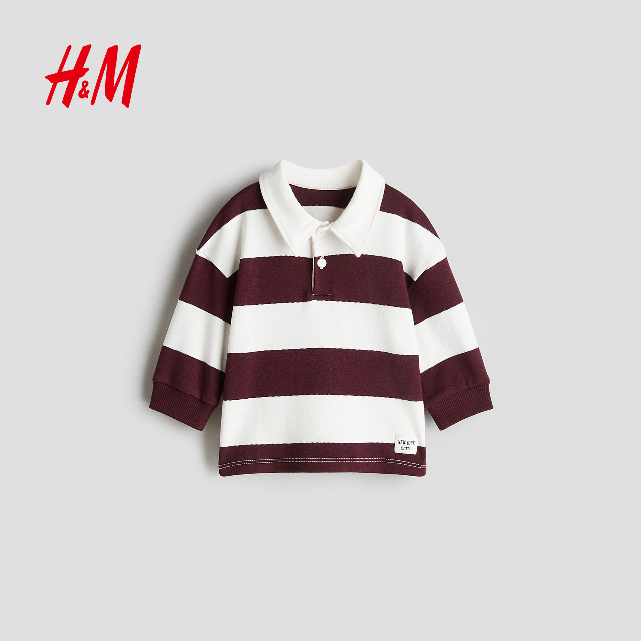 HM童装男婴T恤2025冬季新款洋气运动条深红色橄榄球衫上衣1297424