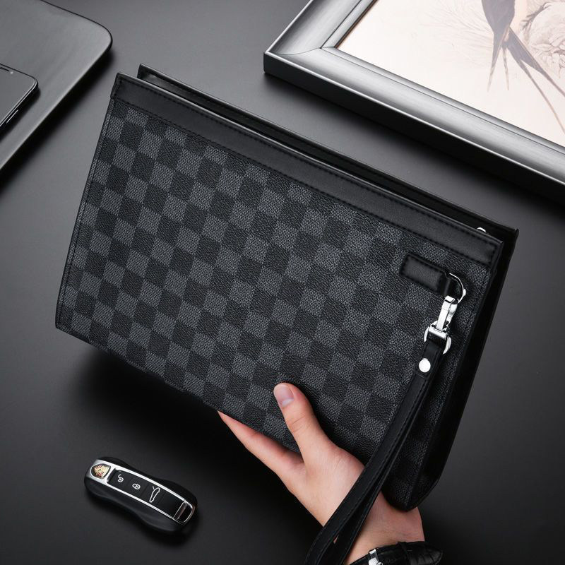 新款男士手拿包LPVC大牌手包男休闲大容量手抓包潮男棋盘格子夹包