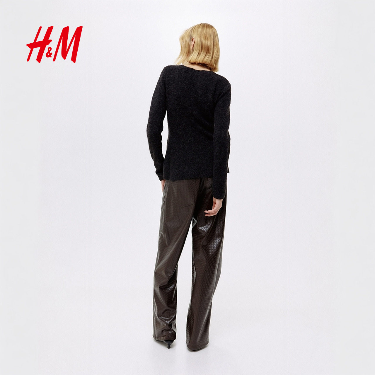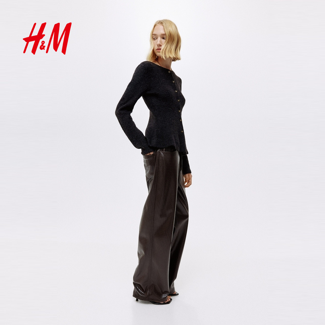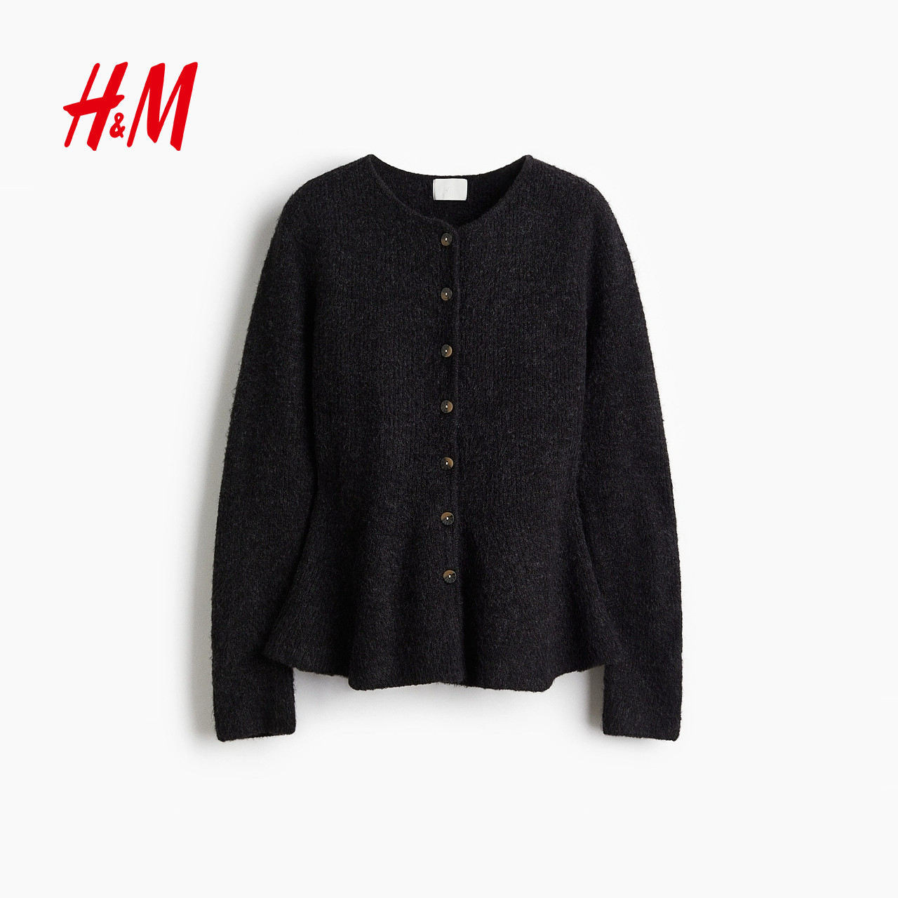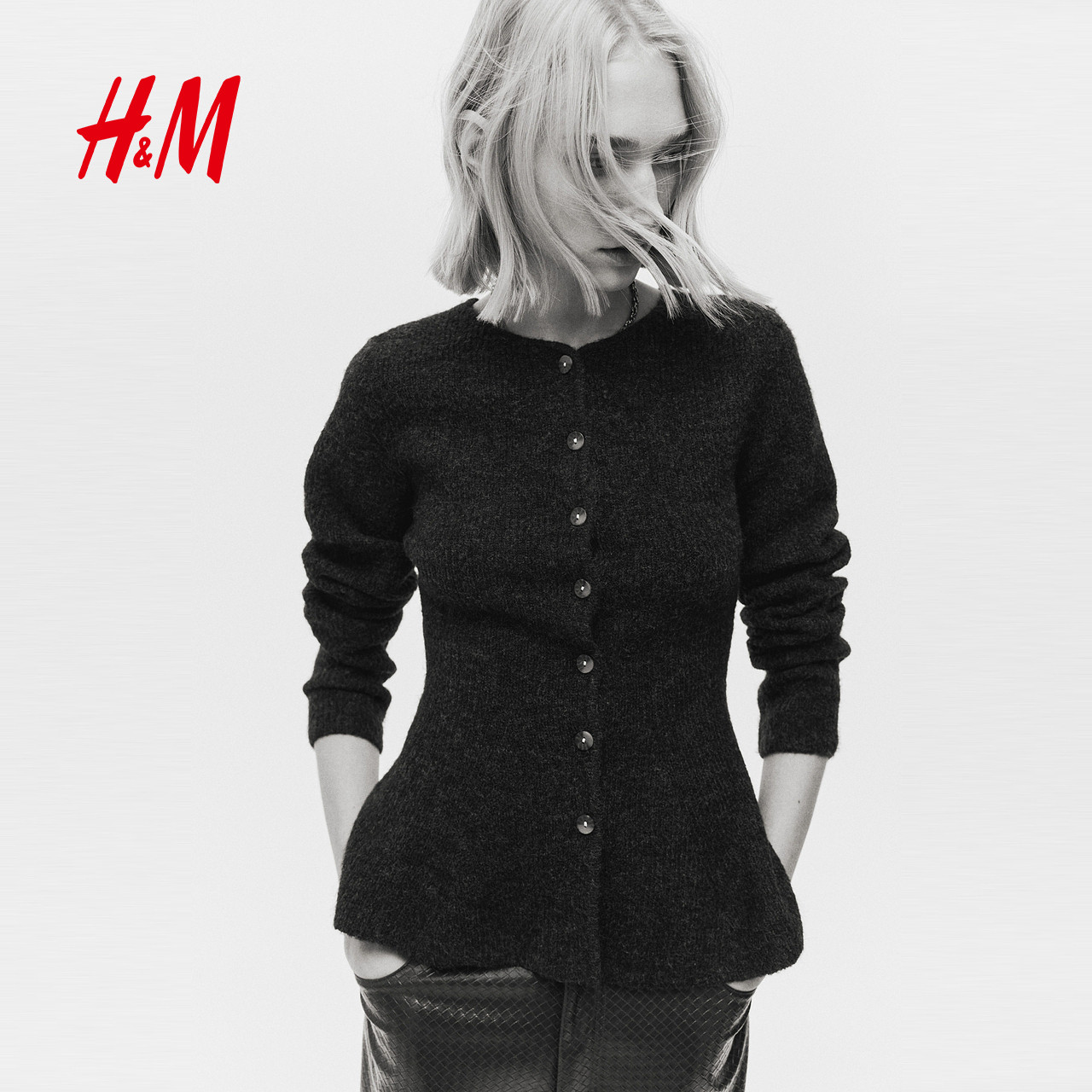 HM2026春季新款女装罗纹针织裙式下摆开衫1310801