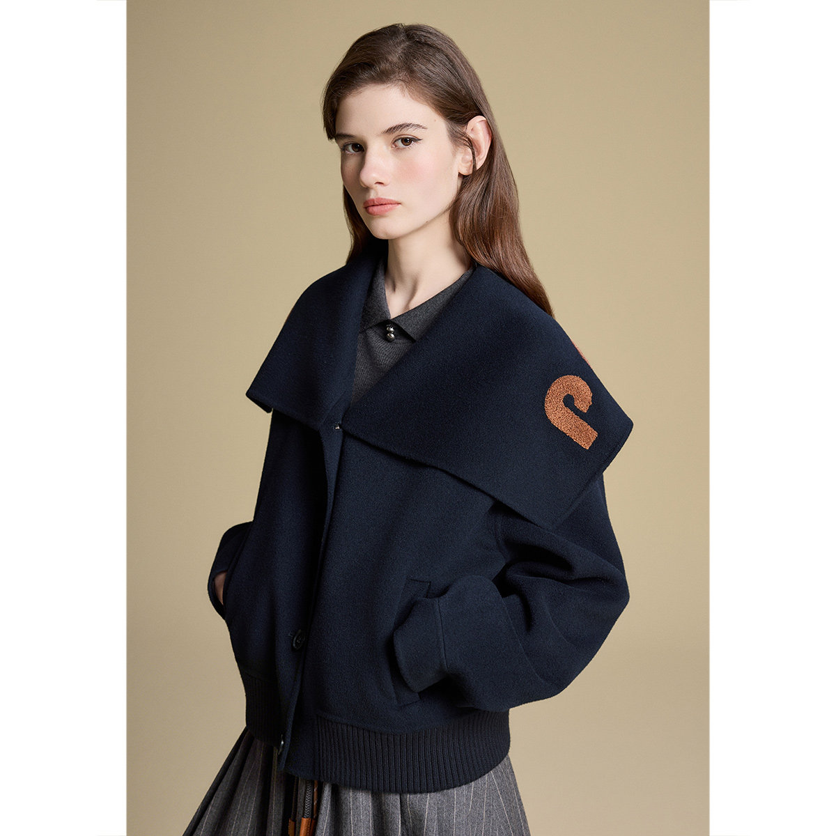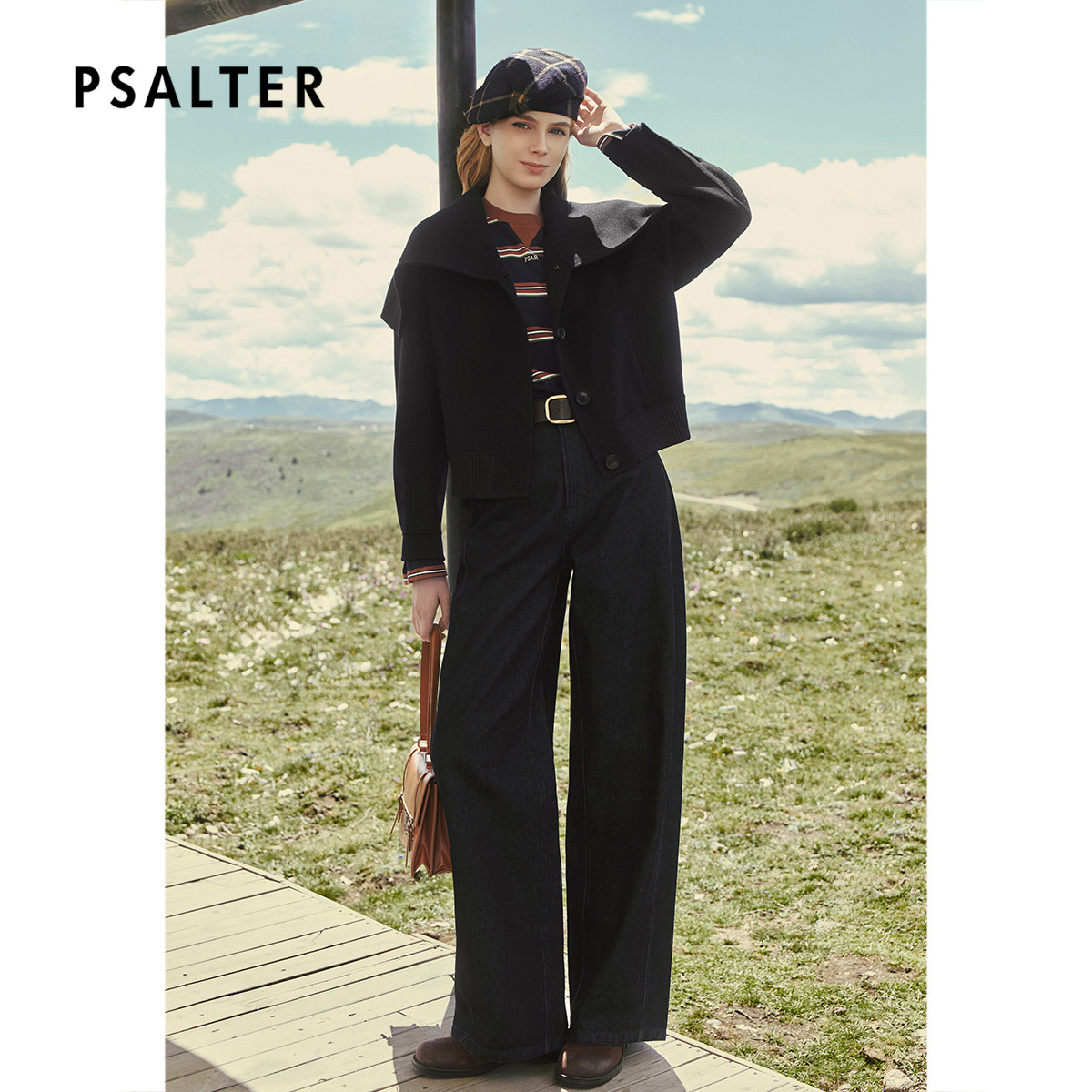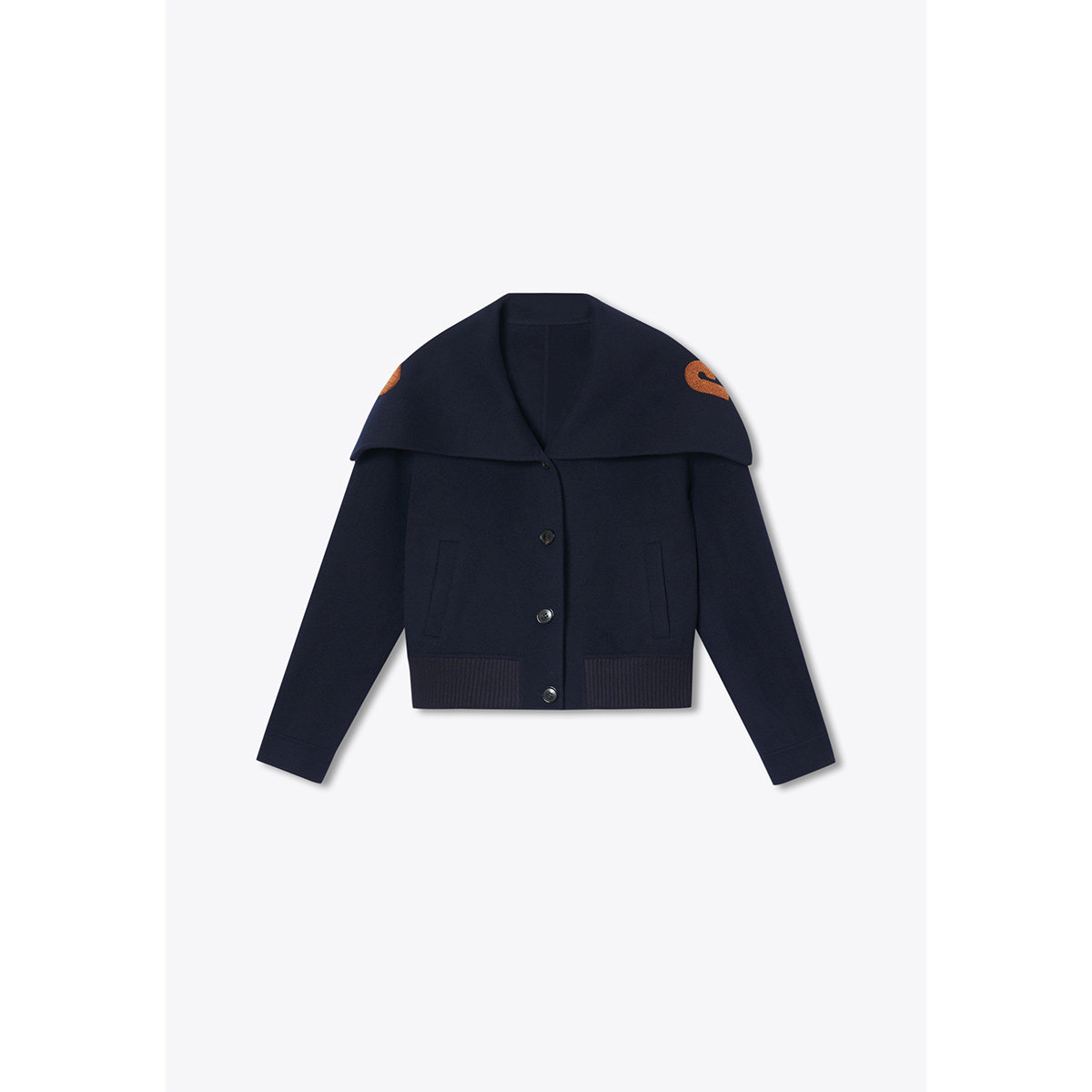 PSALTER诗篇复古学院双面呢大翻领绣字羊毛呢短外套2025冬款