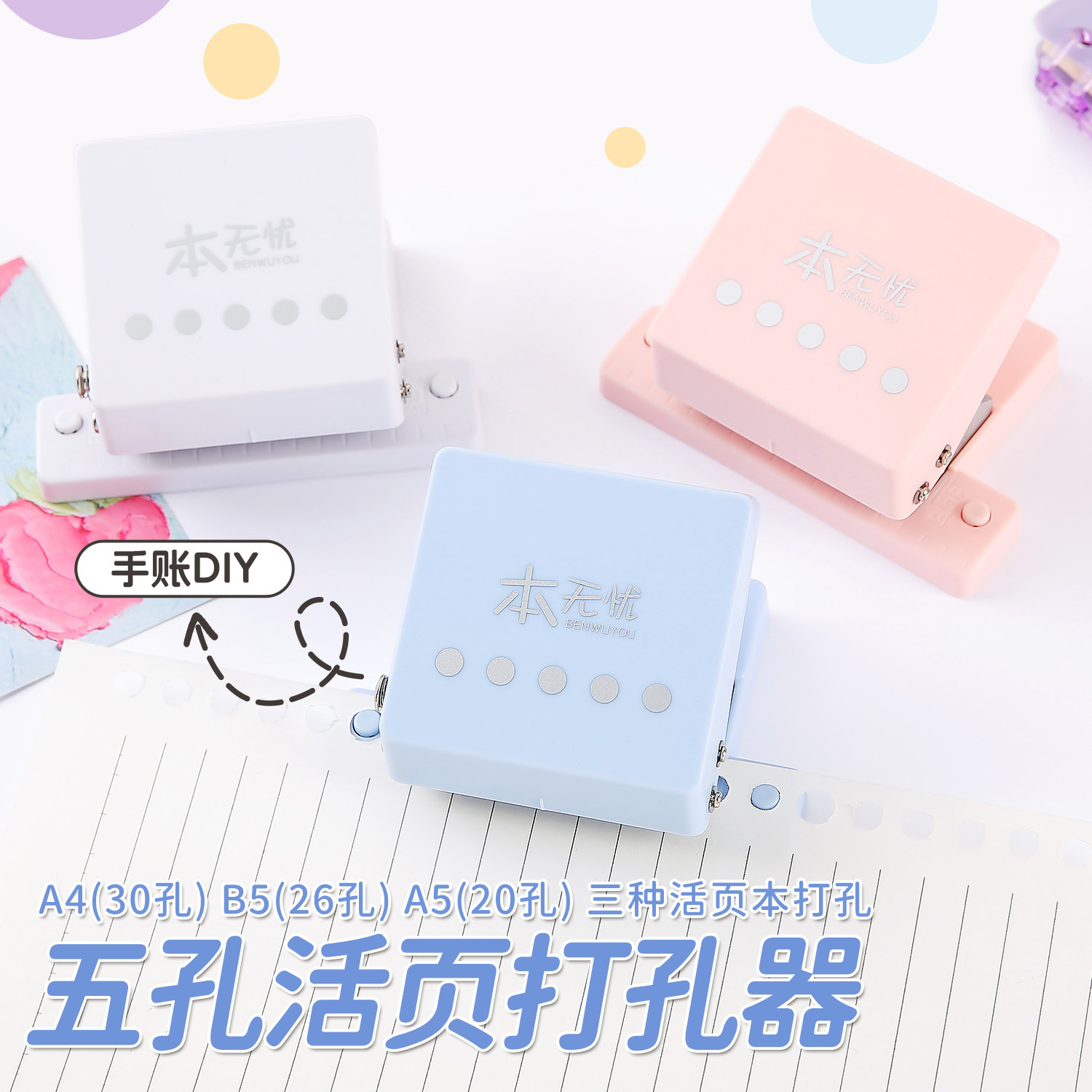 活页本打孔器学生专用五孔多孔打孔机a4纸张文件手帐打洞器小型