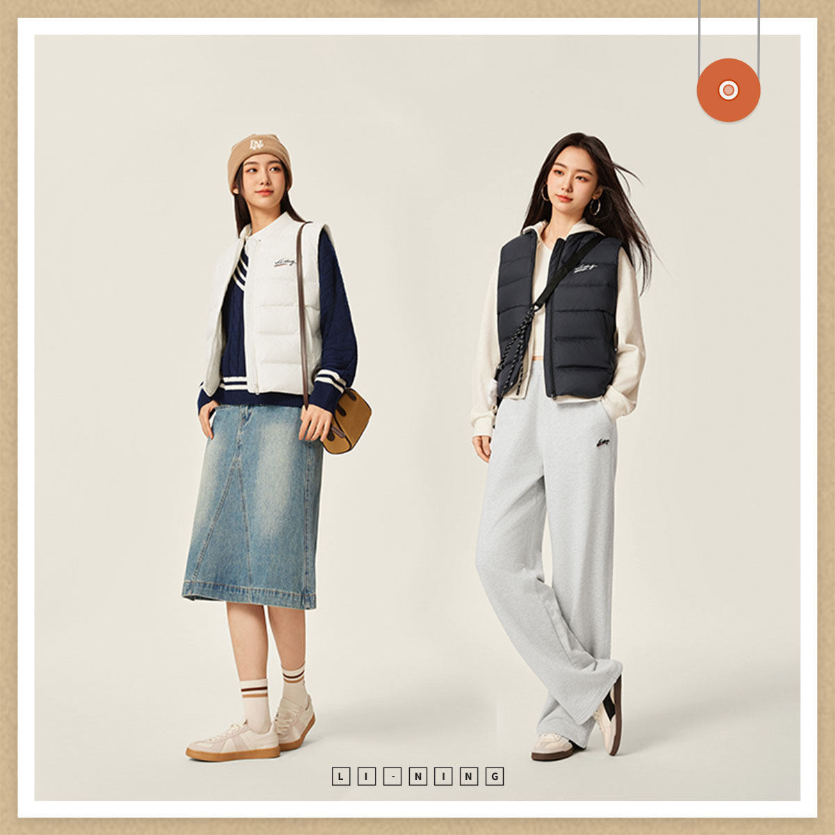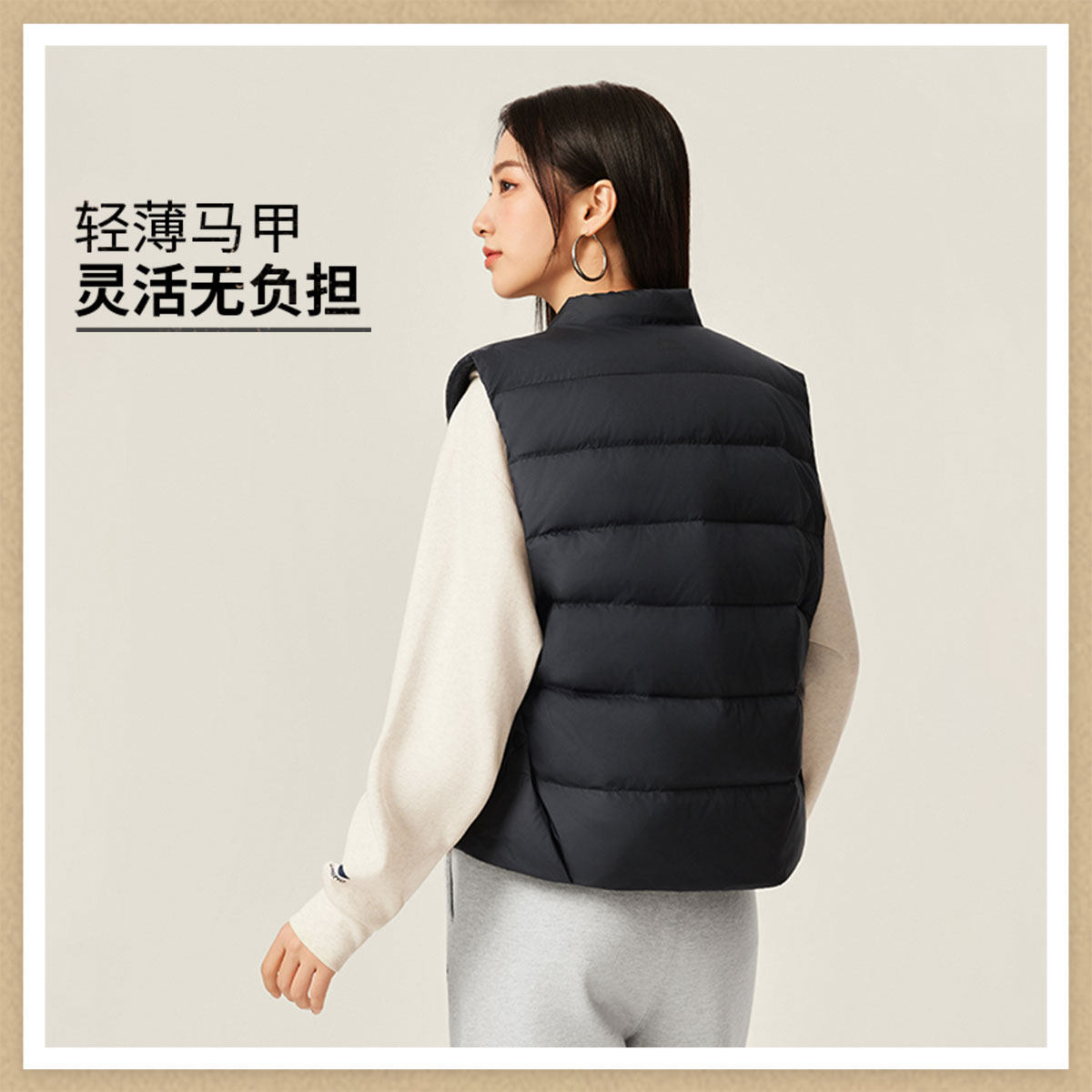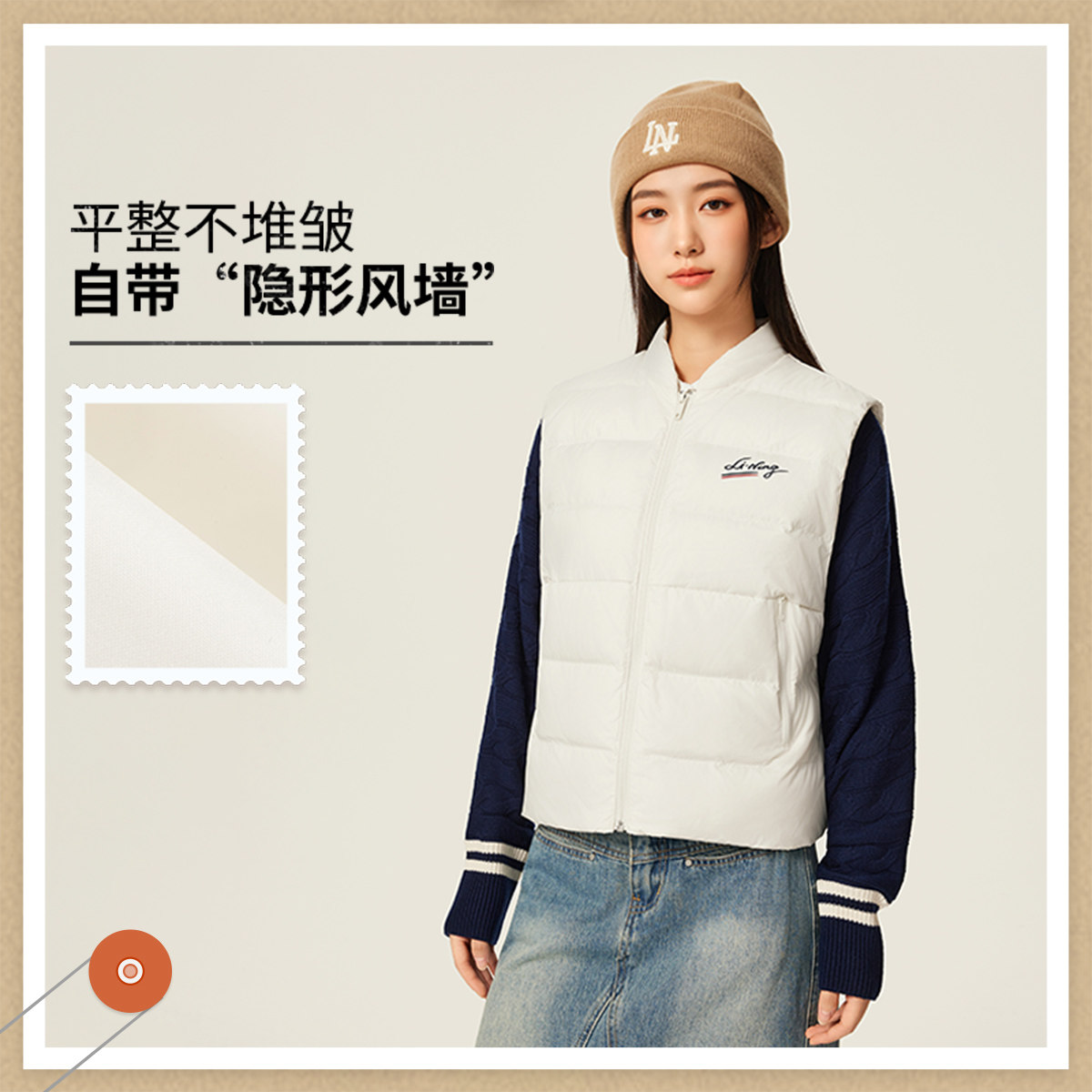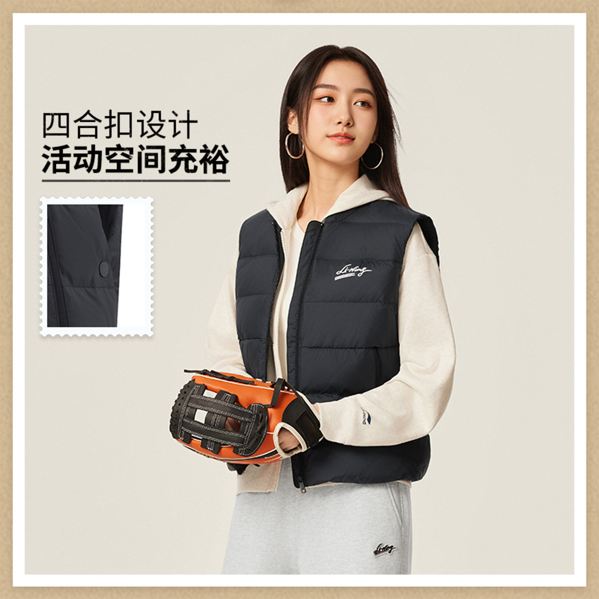 李宁羽绒服 运动潮流系列 女款简约时尚保暖御寒宽松经典羽绒马甲