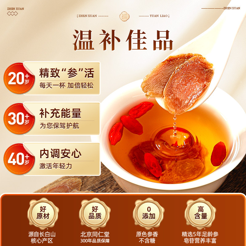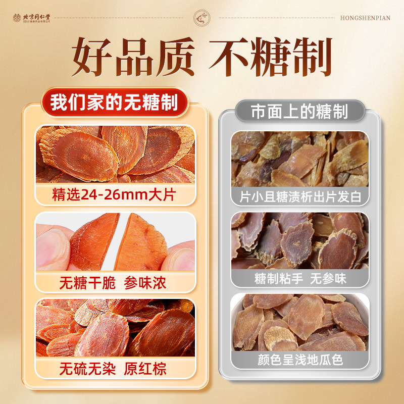 北京同仁堂长白山特级红参片干人参片无糖正品官方旗舰店高丽参茶
