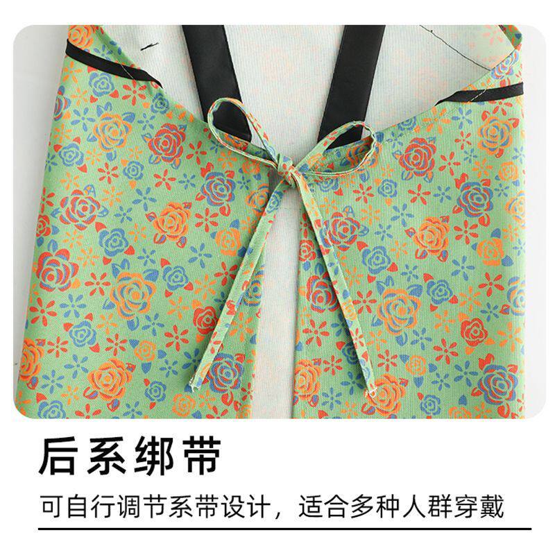 新款棉布耐磨围裙长袖厨房家用防污罩衣透气围腰做饭上班工作服女