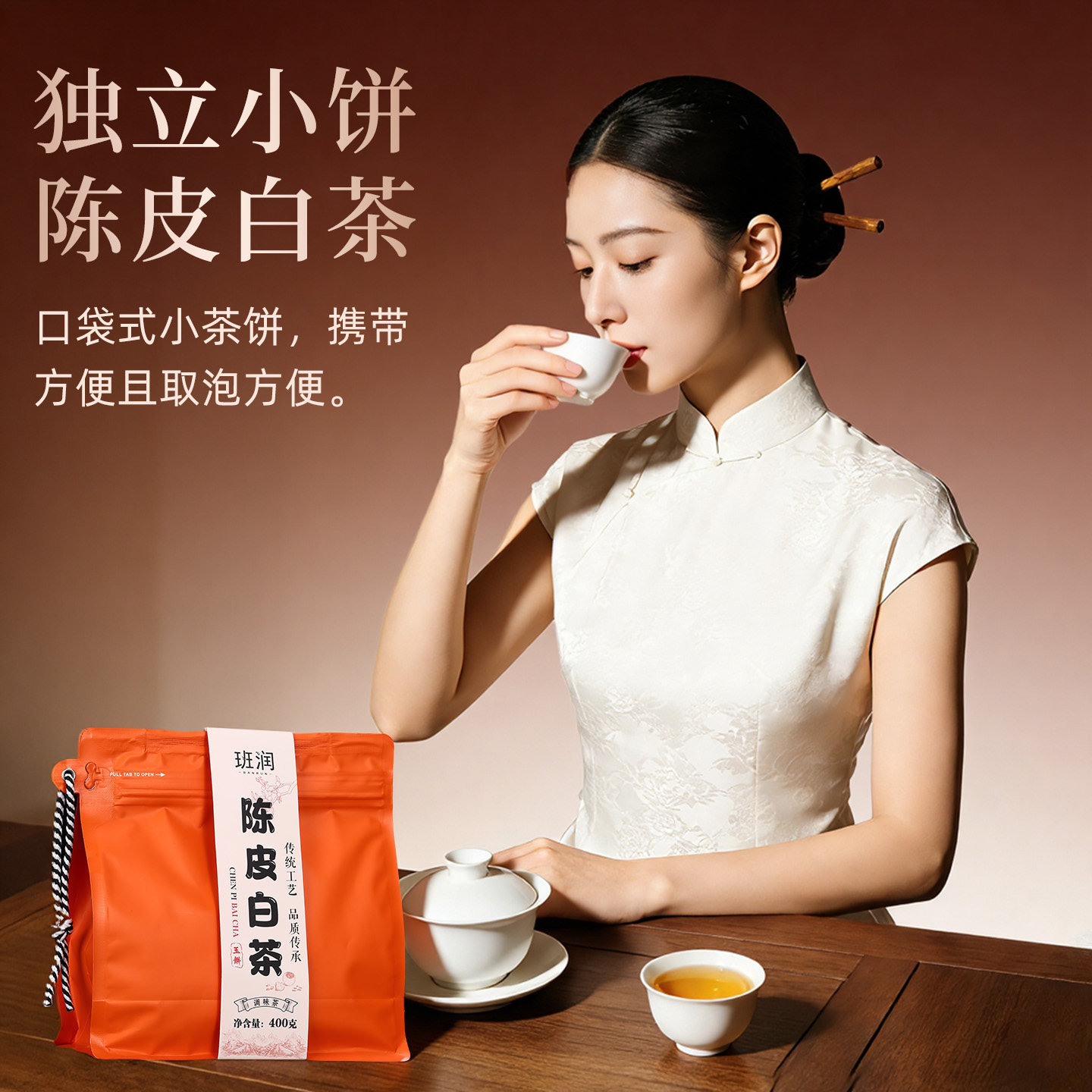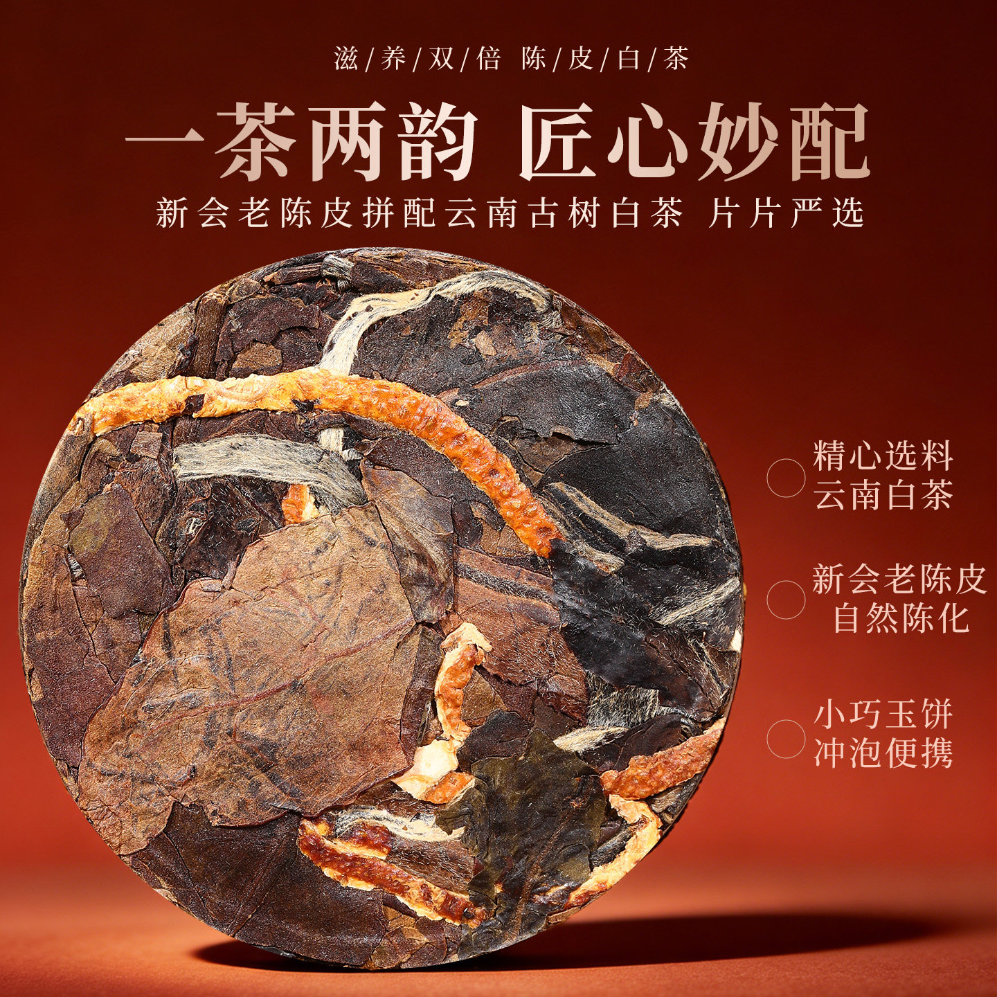 陈皮白茶小茶饼十年云南老白茶寿眉新会老陈皮袋装柑普茶叶自己喝