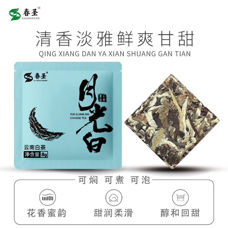 云南老树月光白小饼花香白茶月光美人小方块春茶饼干白茶豪香薄片