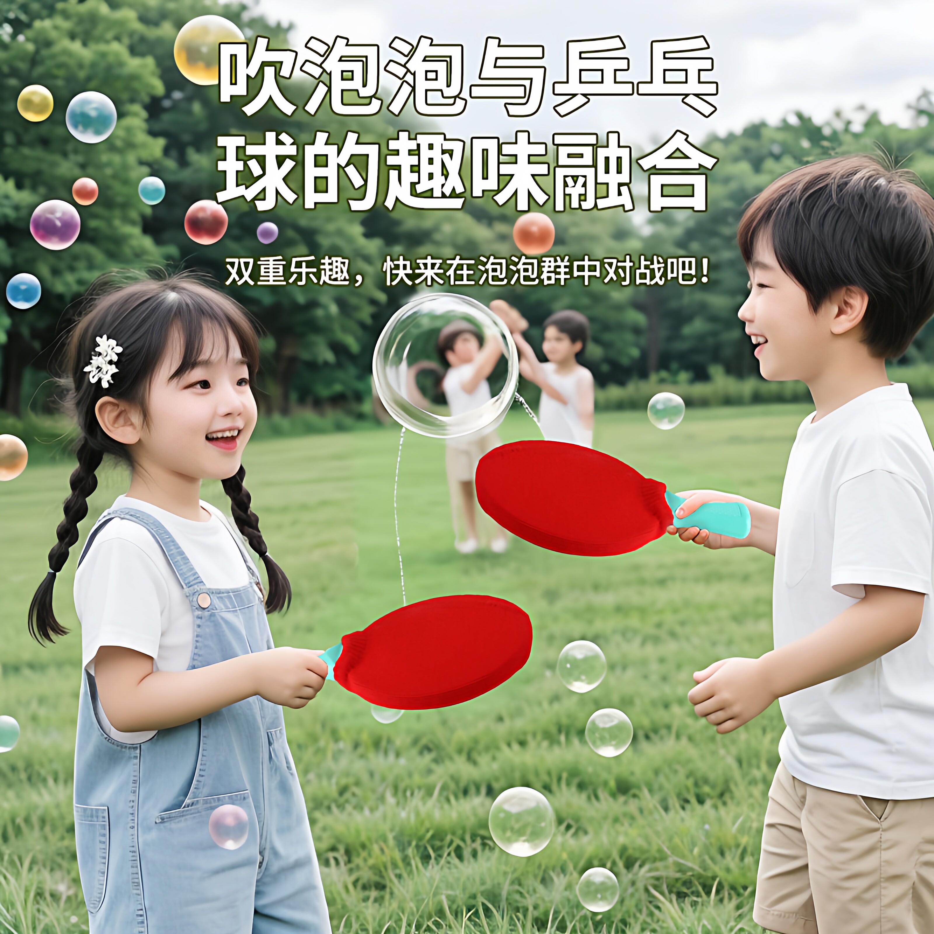 爆款儿童吹泡泡乒乓球玩具男女孩户外可拍打弹力泡泡球魔术玩具