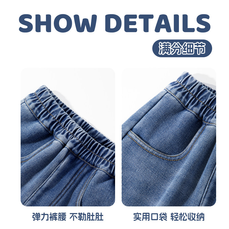 [7A抗菌]女童牛仔裤秋冬宝宝宽松灯笼裤小童休闲儿童加绒裤子女孩