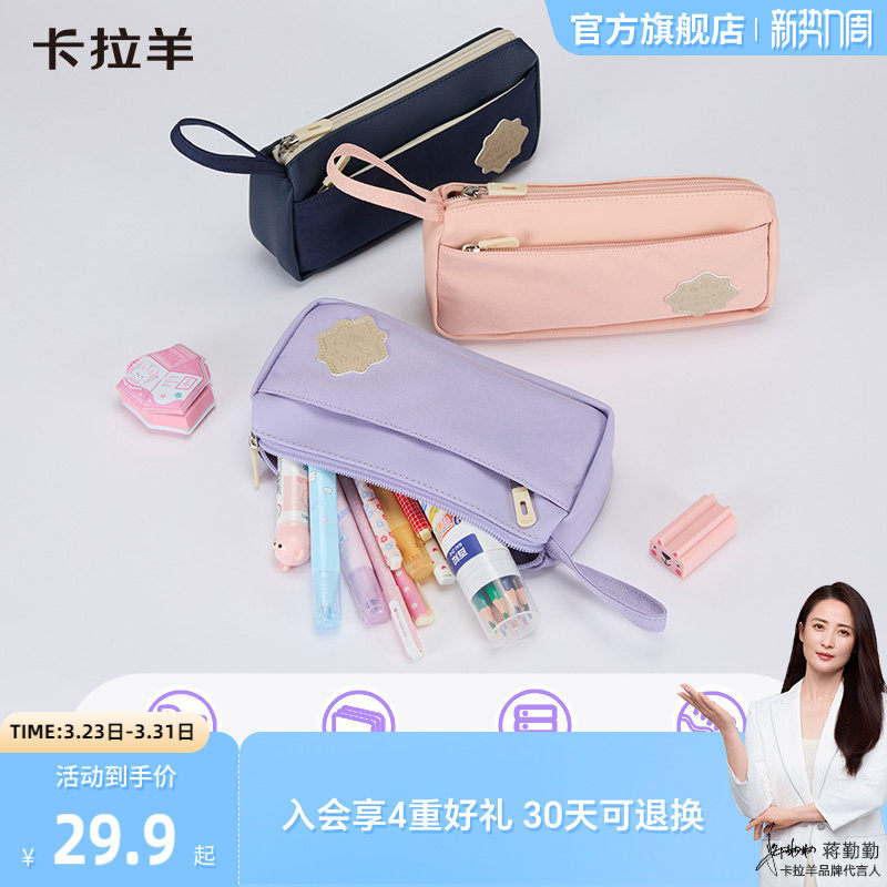 卡拉羊小学生笔袋大容量轻便文具盒安全抑菌防泼水易打理初高中生女考研收纳铅笔袋男可爱简约ins风糖果色