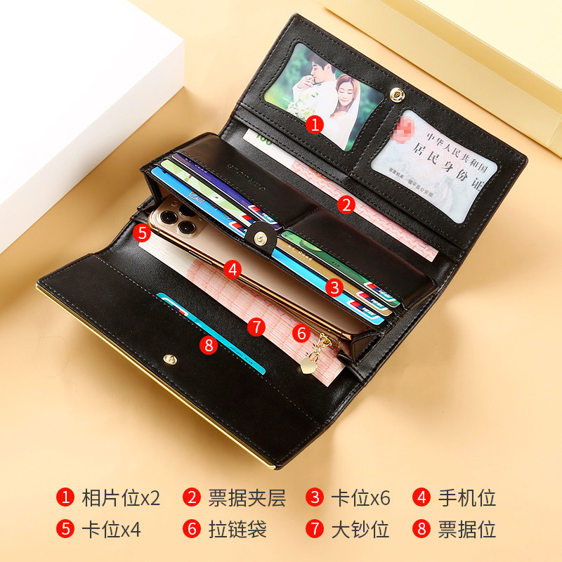 多卡位纯皮真皮2025新款女士钱包女长款手机包真皮牛皮大容量皮夹