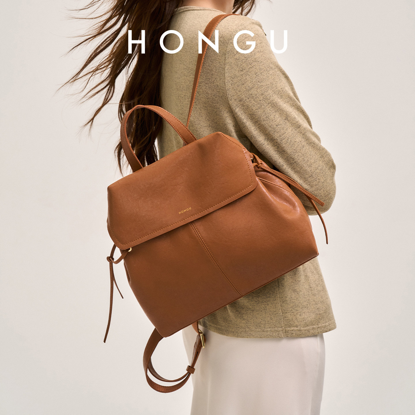 红谷新款植鞣皮双肩包大容量上班通勤公文包休闲背包真皮女士包包