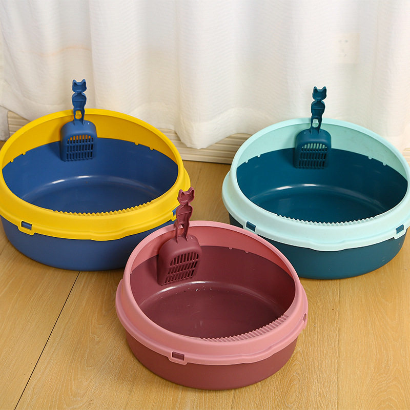 免运猫厕所 圆形半封闭猫砂盆高边防外溅送猫砂铲 超大号猫砂盆