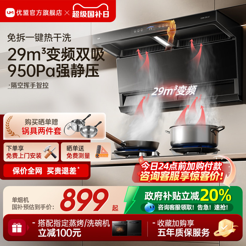 【政府补贴20%】优盟抽油烟机燃气灶套餐7字烟机灶具套装家用厨房