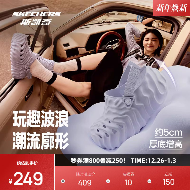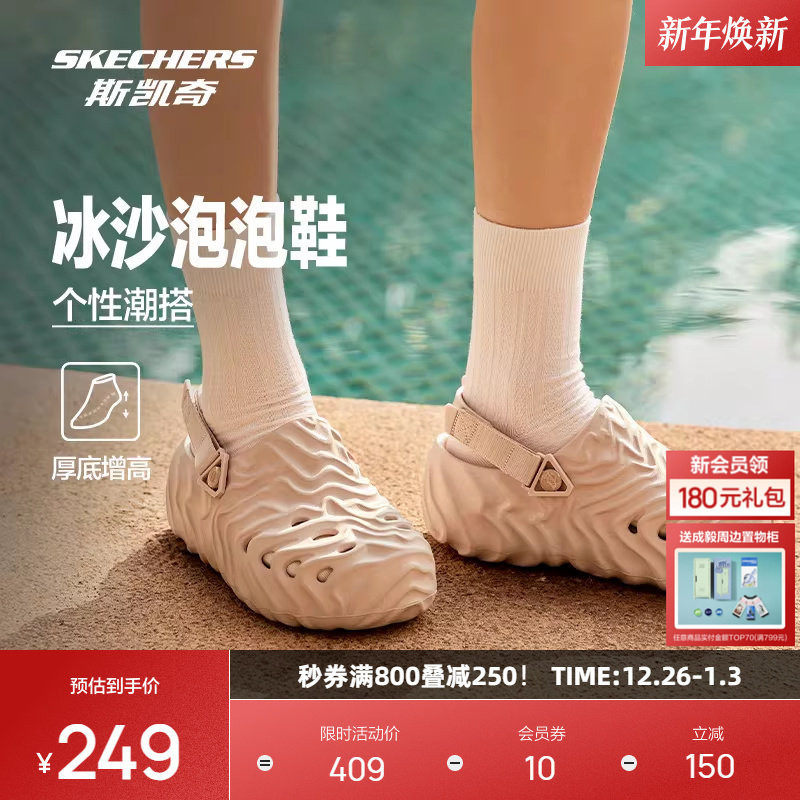 斯凯奇冰沙泡泡鞋2025年新品多巴胺洞洞鞋女子增高凉鞋沙滩鞋