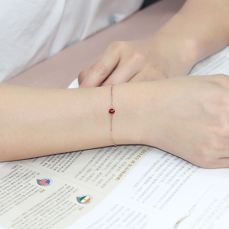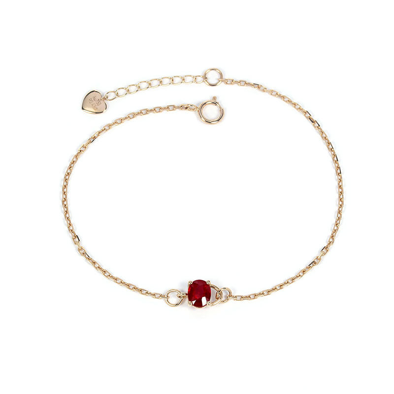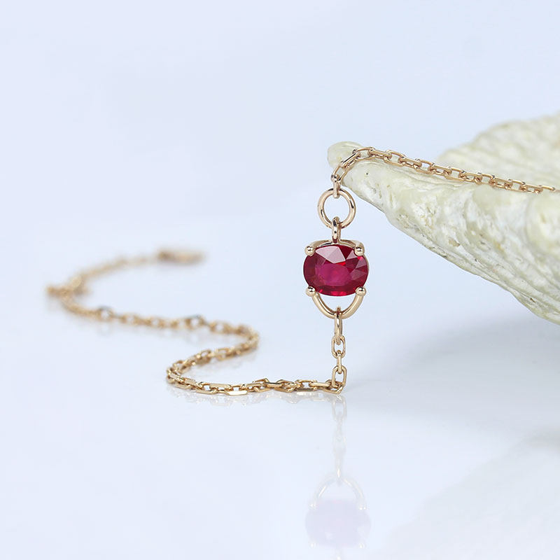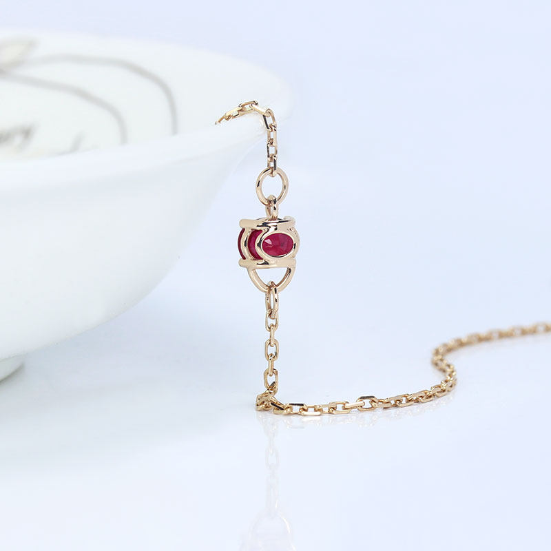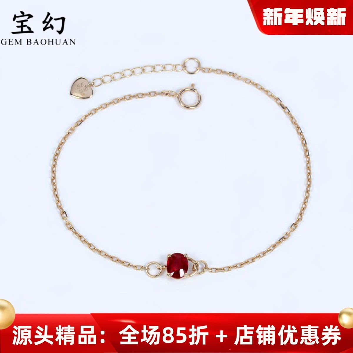 G18K玫瑰金天然鸽血红宝石手链 正红色简约通勤彩金手饰女款正品