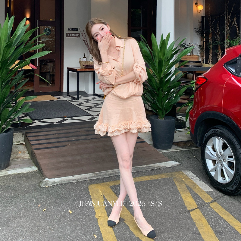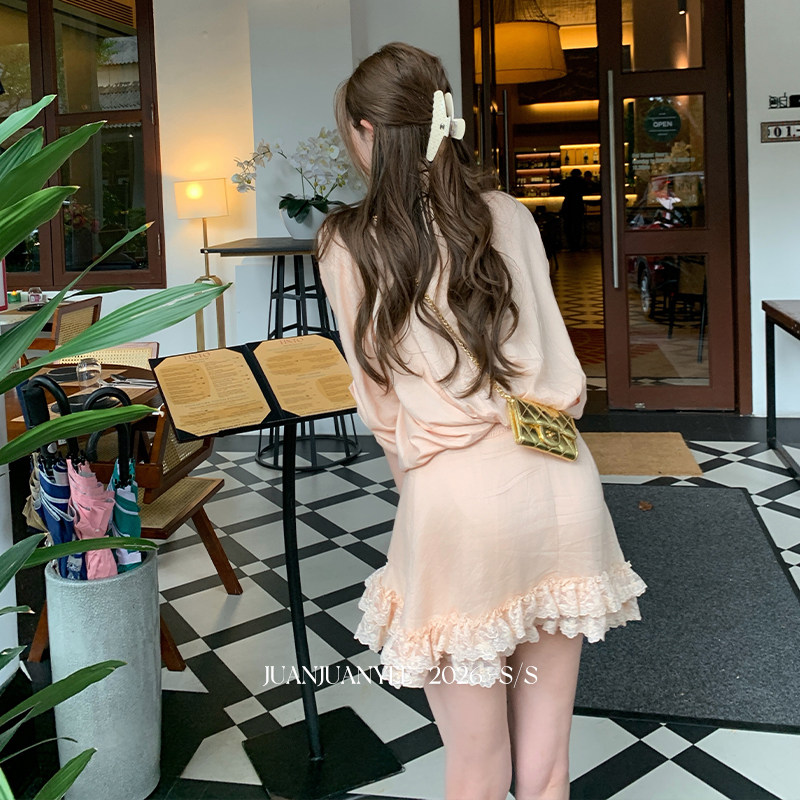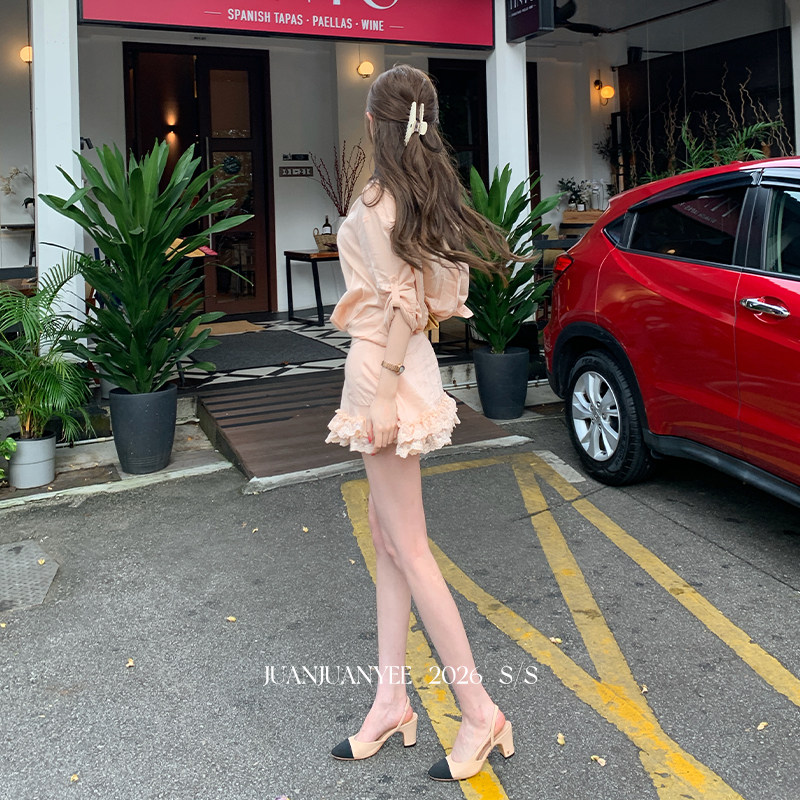 BANANA CICI2026年春季新款荷叶边V领针织衫/连衣裙
