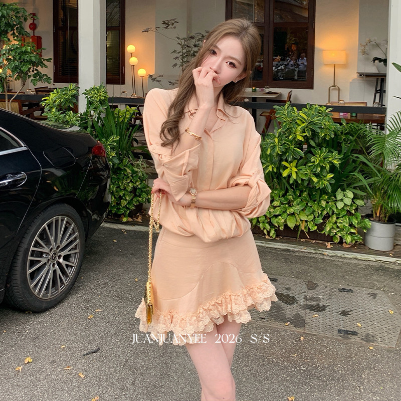 juanjuanyee【仙桃】定染 橘调 重工蕾丝边春夏连衣裙女