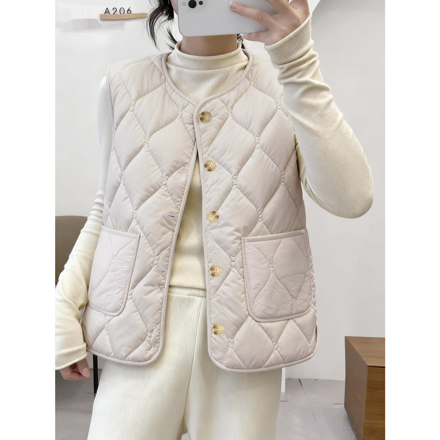 2025秋冬新款无领轻薄圆领羽绒马甲女内穿薄款内胆羽绒服背心坎肩