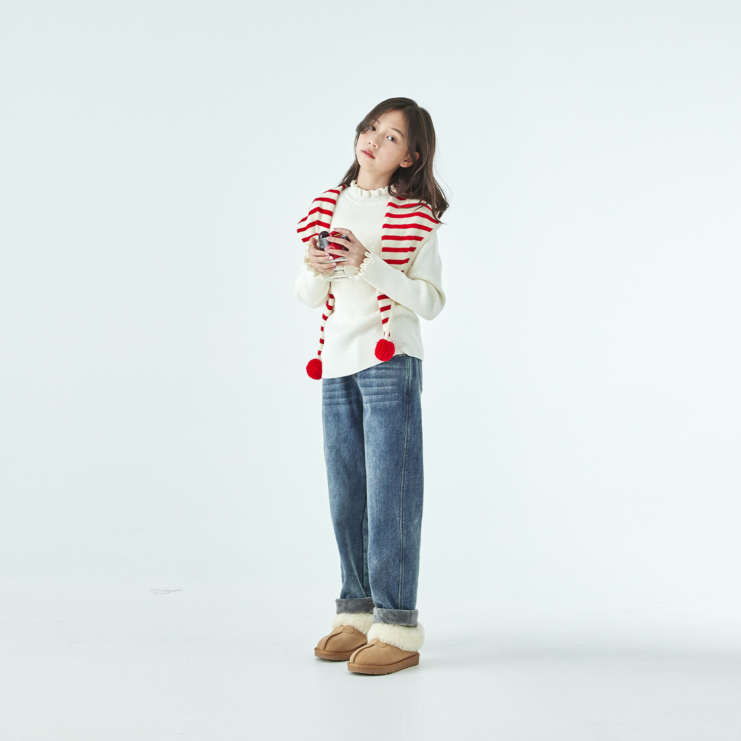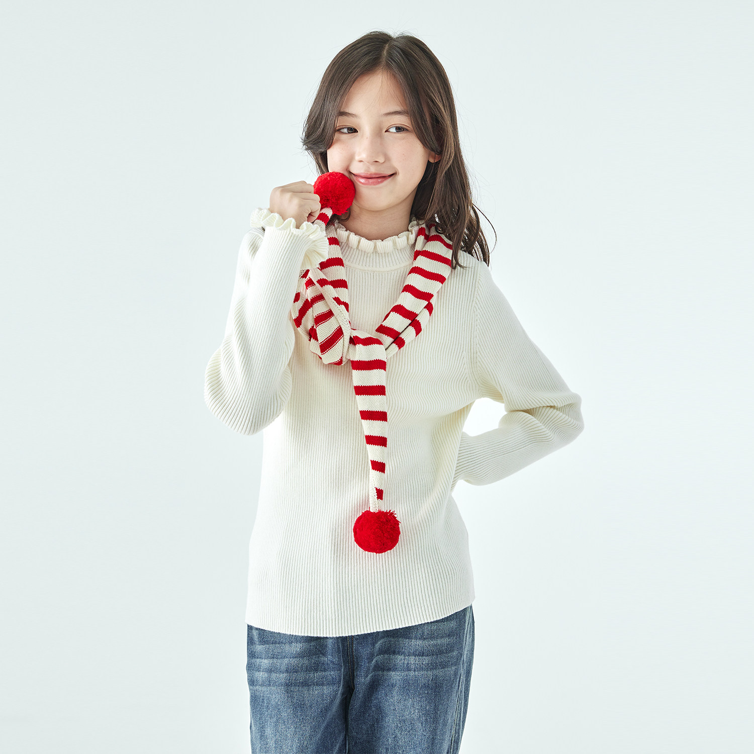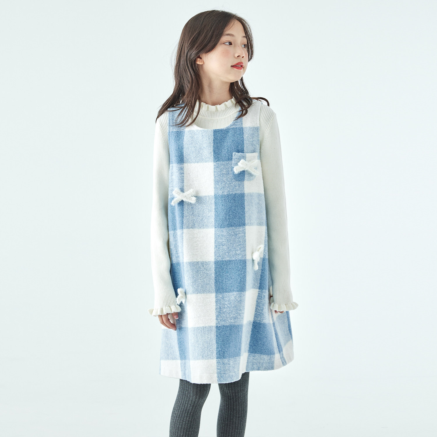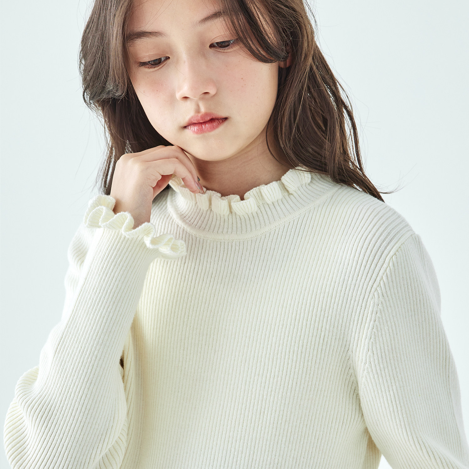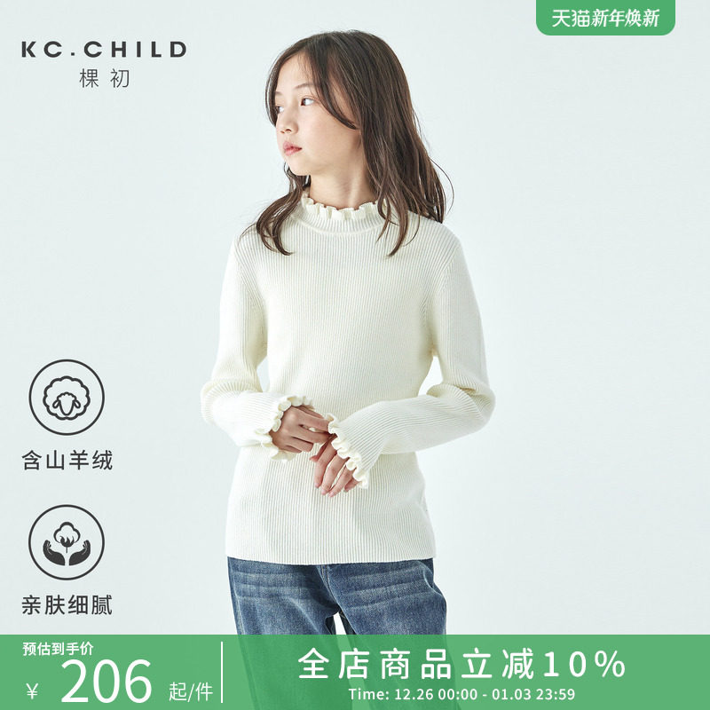 棵初25年冬季新款亲子中大女童木耳边针织打底衫棉羊绒混内搭上衣