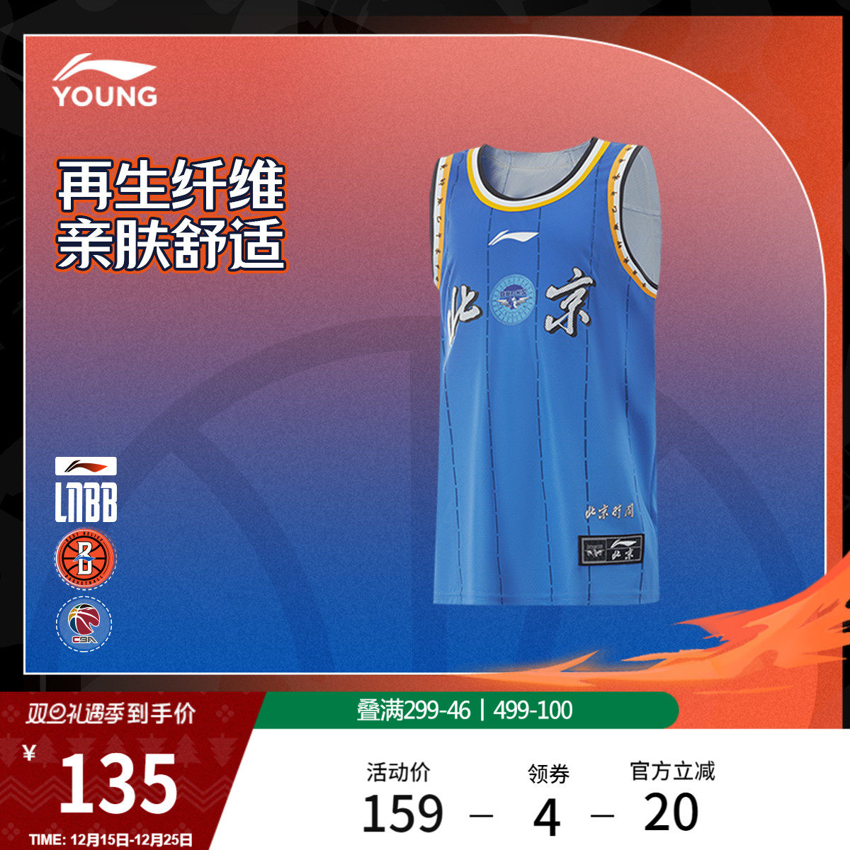 李宁男孩大童CBA篮球系列北京队童装篮球比赛服运动训练针织童装