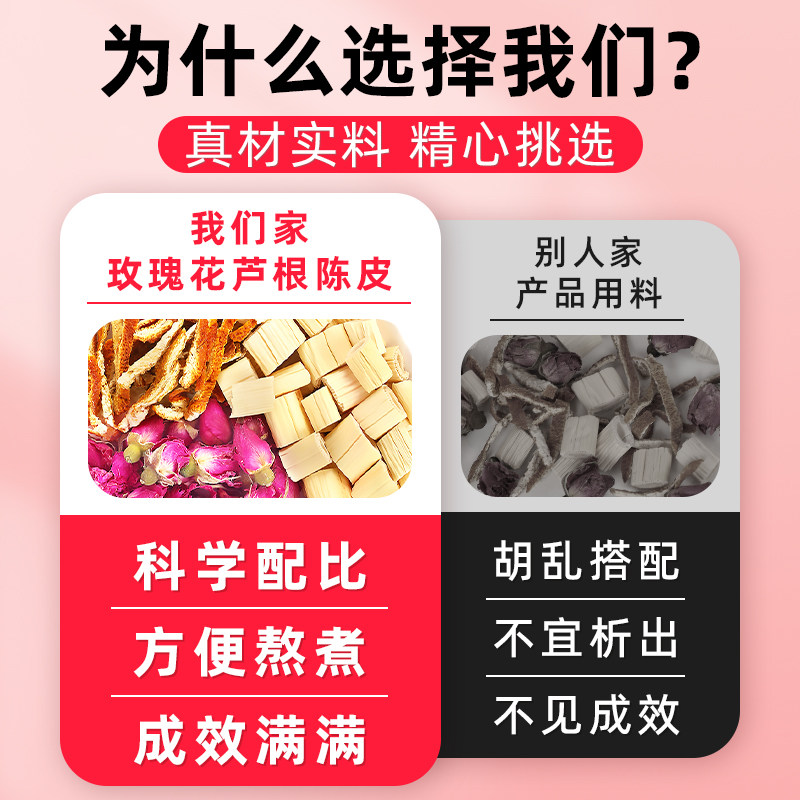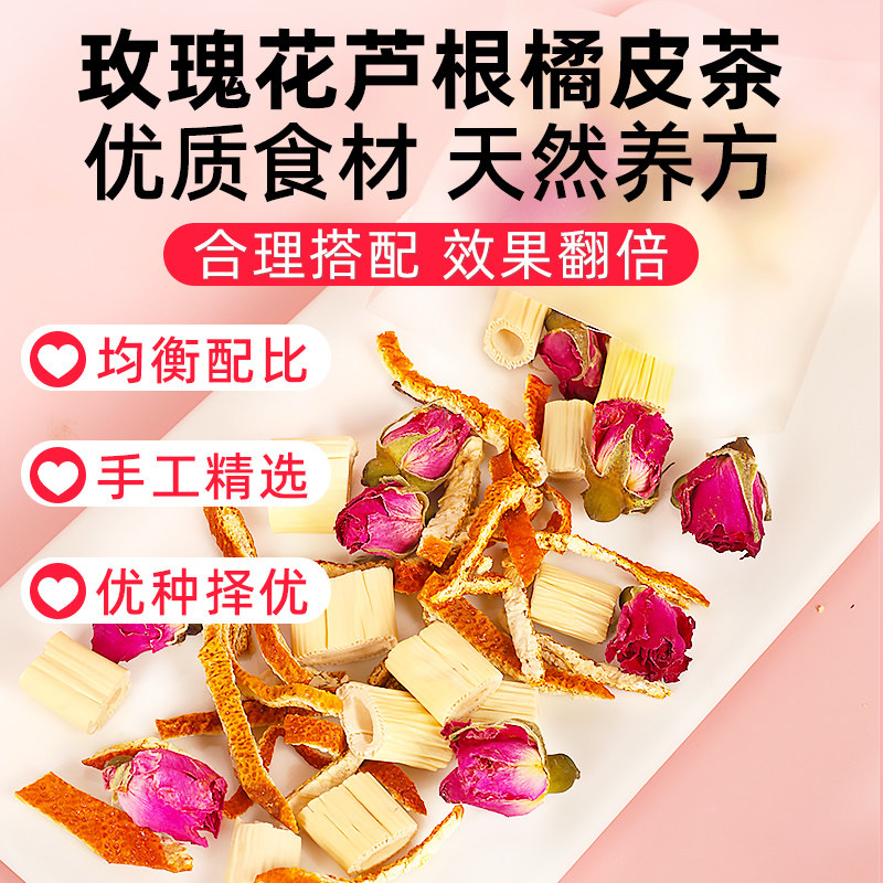 玫瑰花芦根陈皮组合茶包各3g克中药材丝卢根煮代茶饮品喉咙异物感