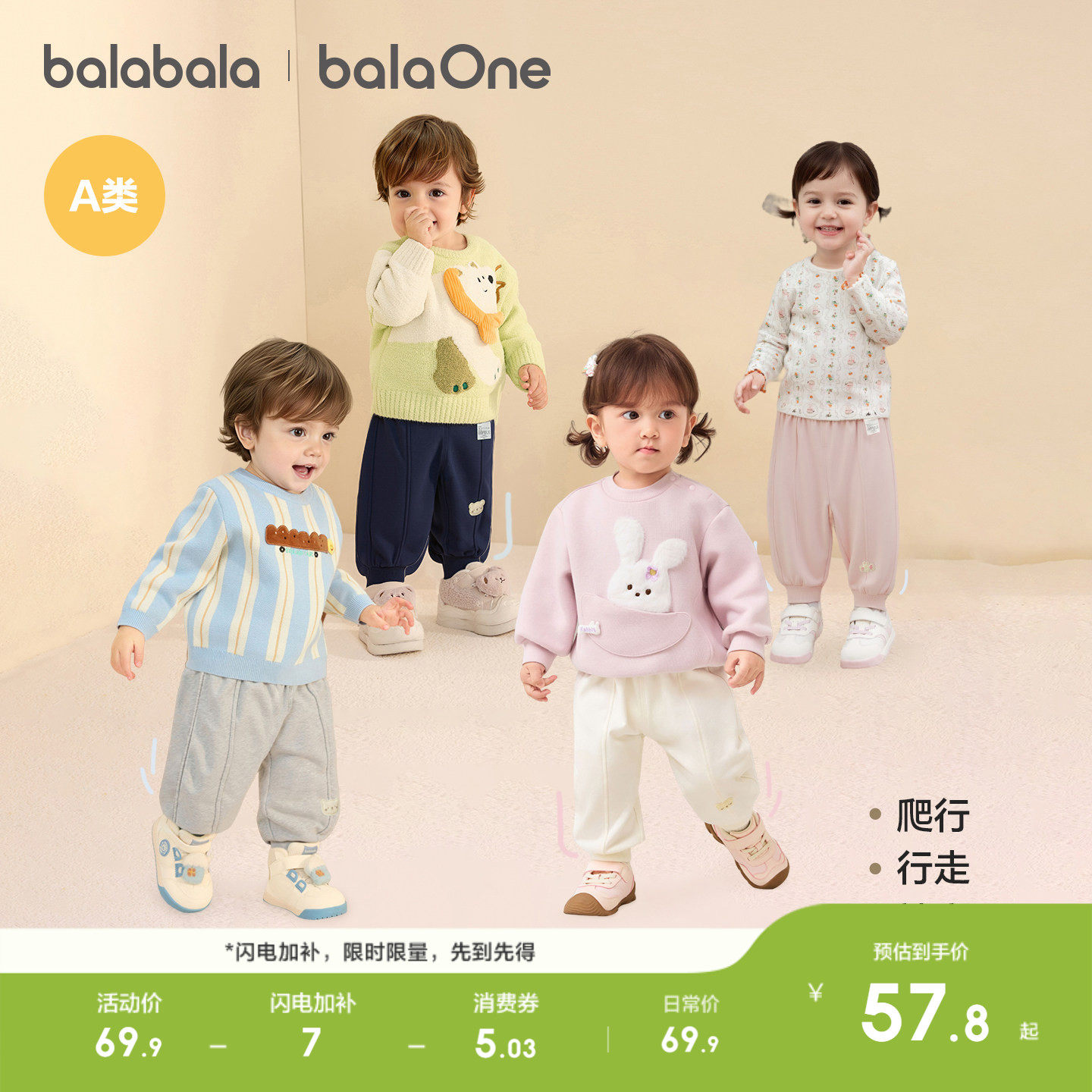 巴拉巴拉童装宝宝裤子儿童2026新款春装男女童运动长裤婴儿束脚裤