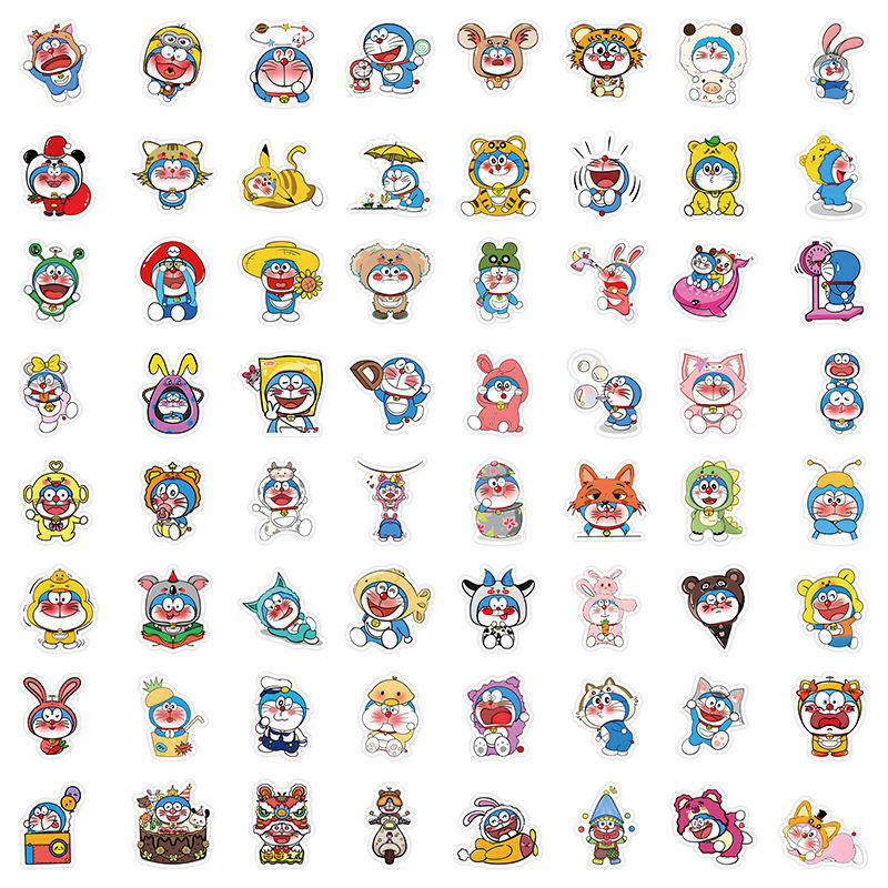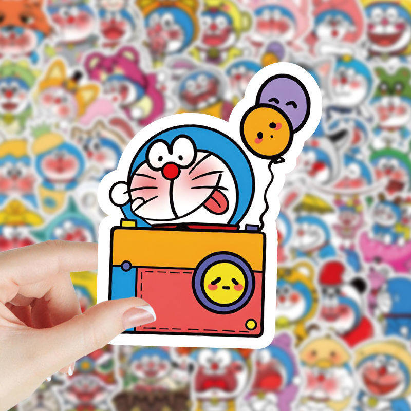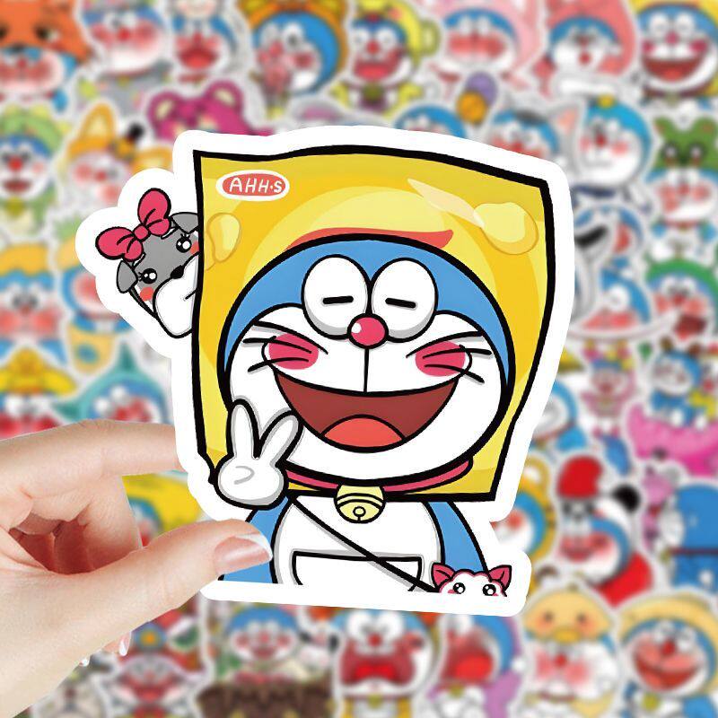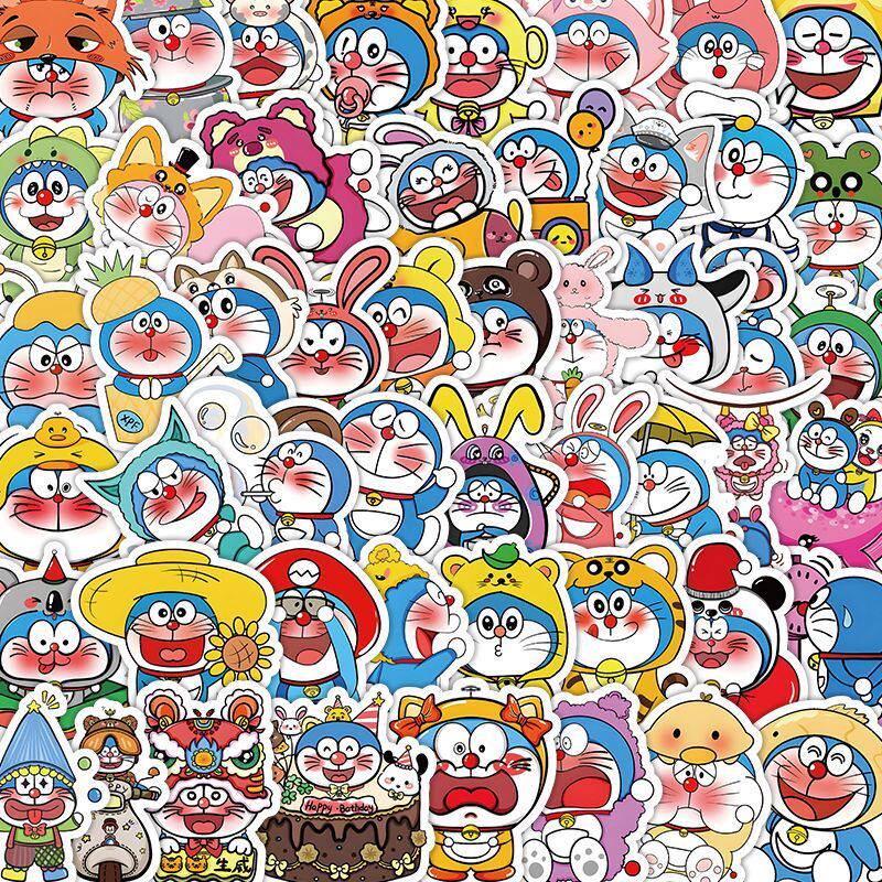 130张哆啦a梦贴纸卡通可爱爆款DIY手账笔记本电脑少女心防水贴画
