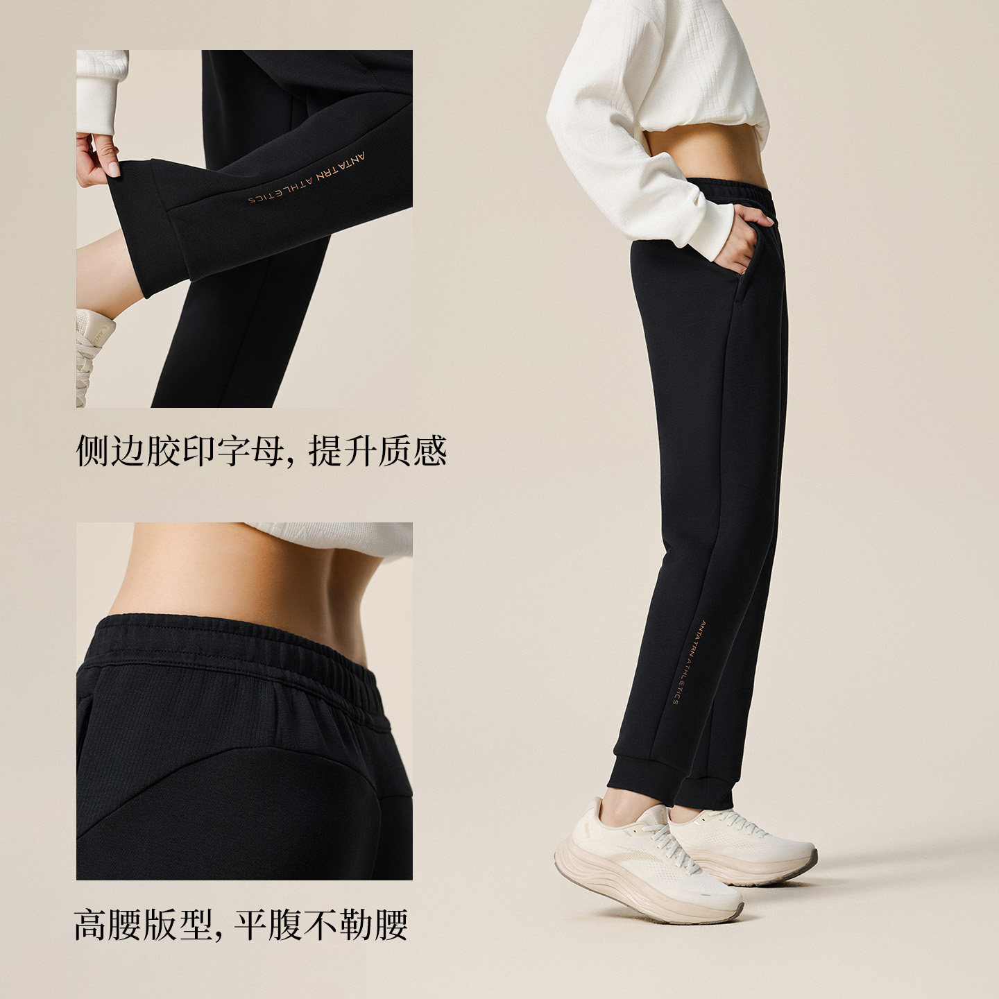 安踏自在裤丨卫裤女冬季黑色针织运动裤百搭休闲长裤子162537322N