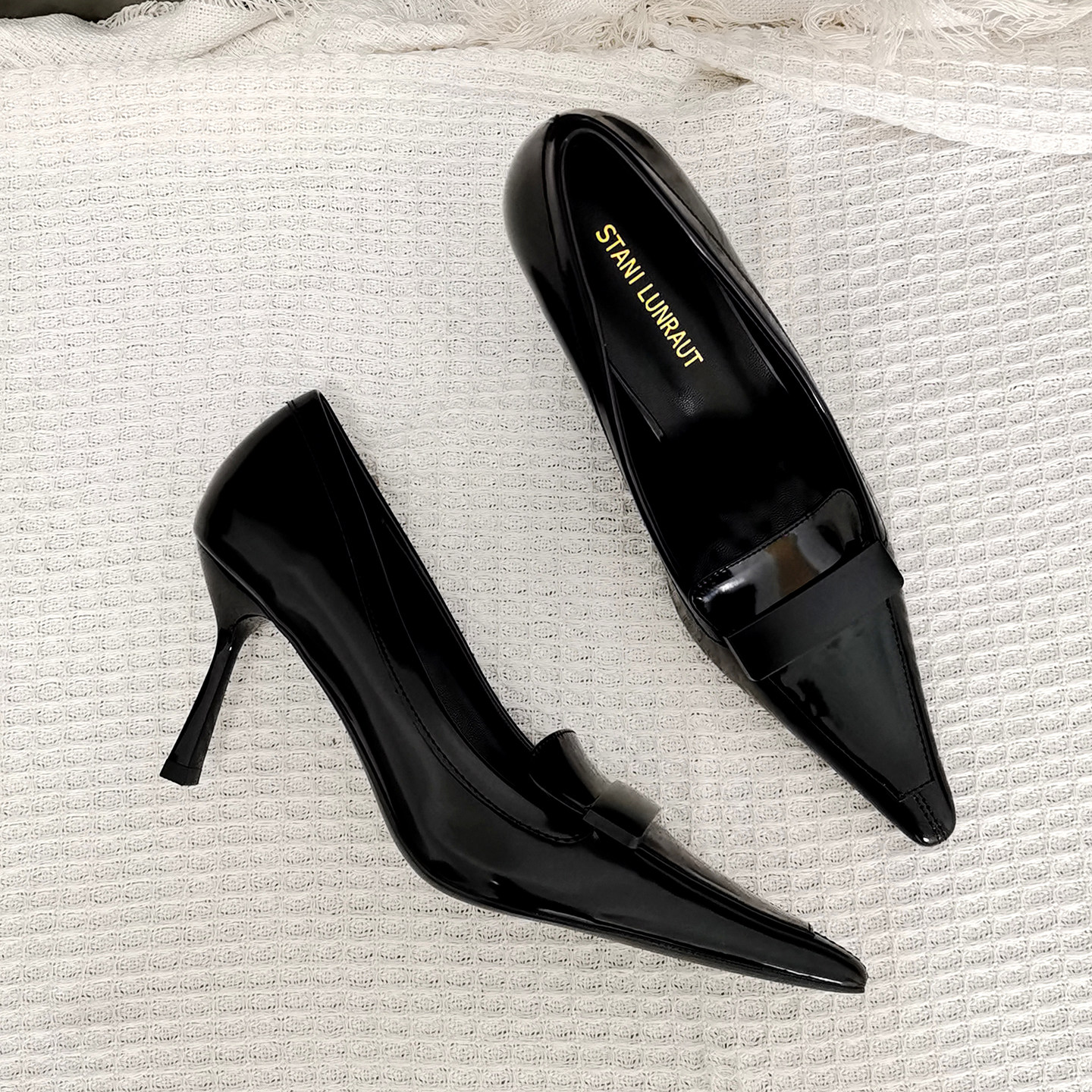 法式复古高跟鞋女浅口黑色细跟漆皮单鞋小方头正流行绝美工作鞋女