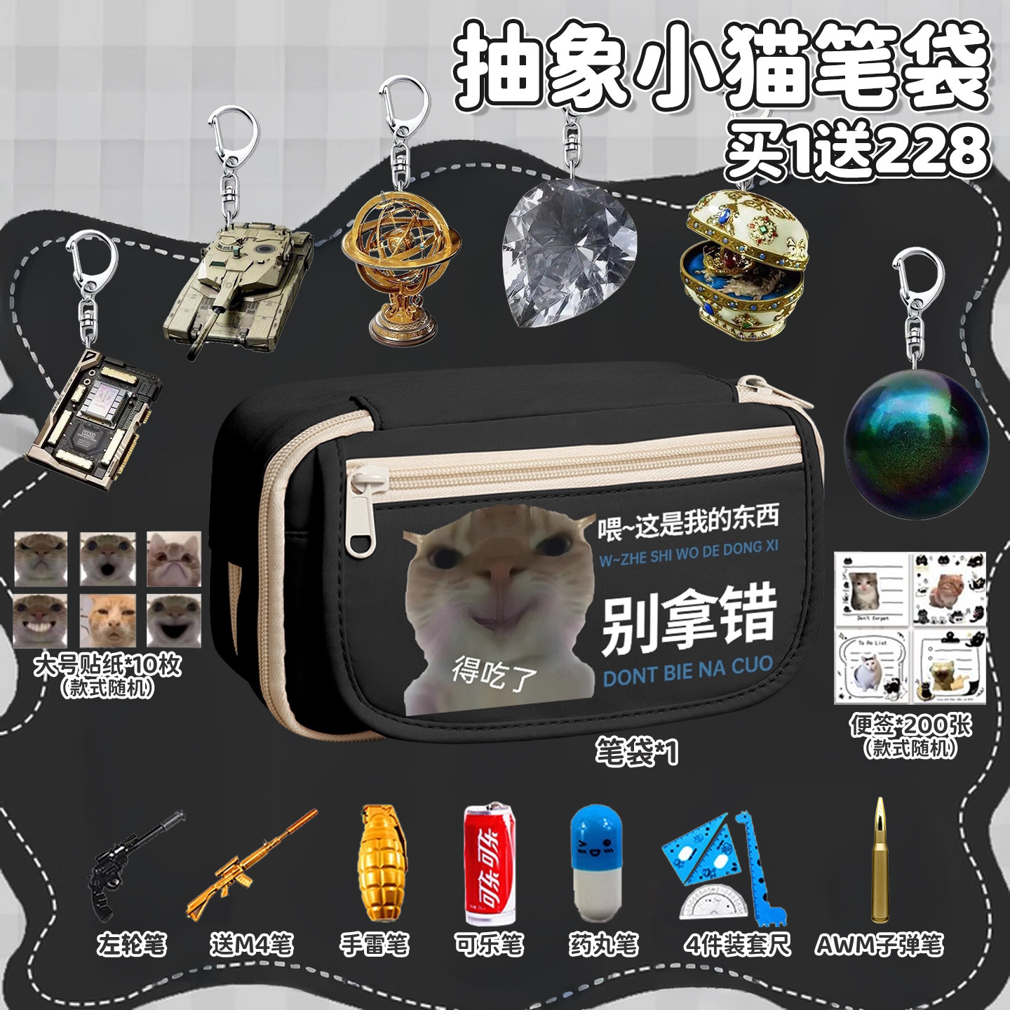 抽象笔袋男孩2025新款三角洲大大容量初中女生文具盒歪嘴小猫多层搞怪收纳抽象铅笔盒黑科技meme笔袋小学初中