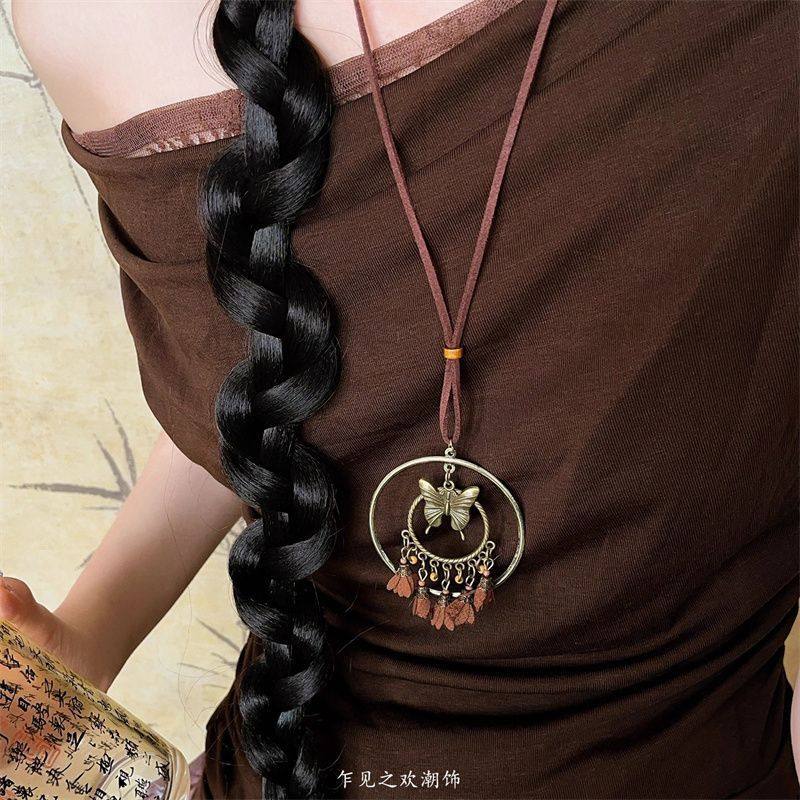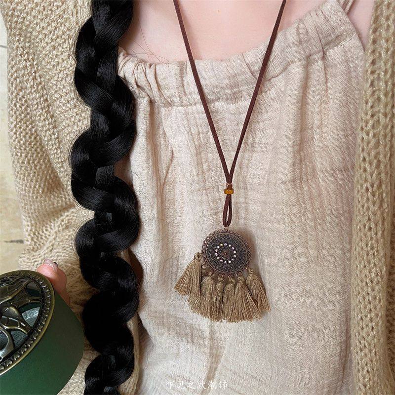 新中式复古长款羽毛项链女民族风高级装饰毛衣链波西米亚吊坠配饰