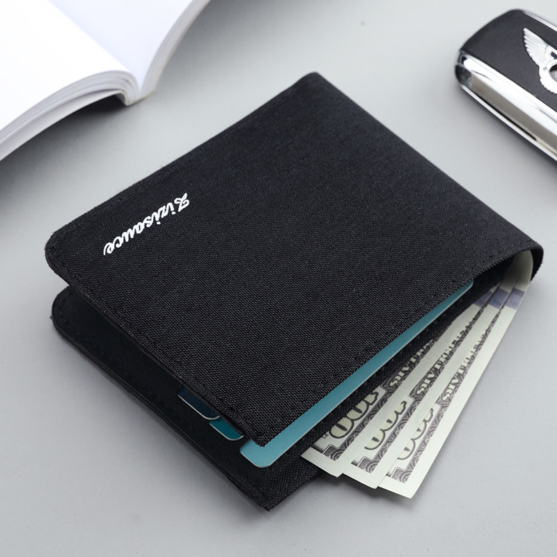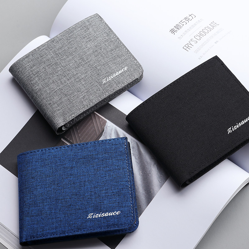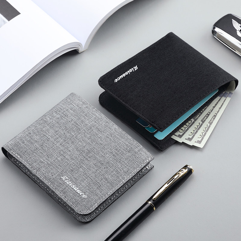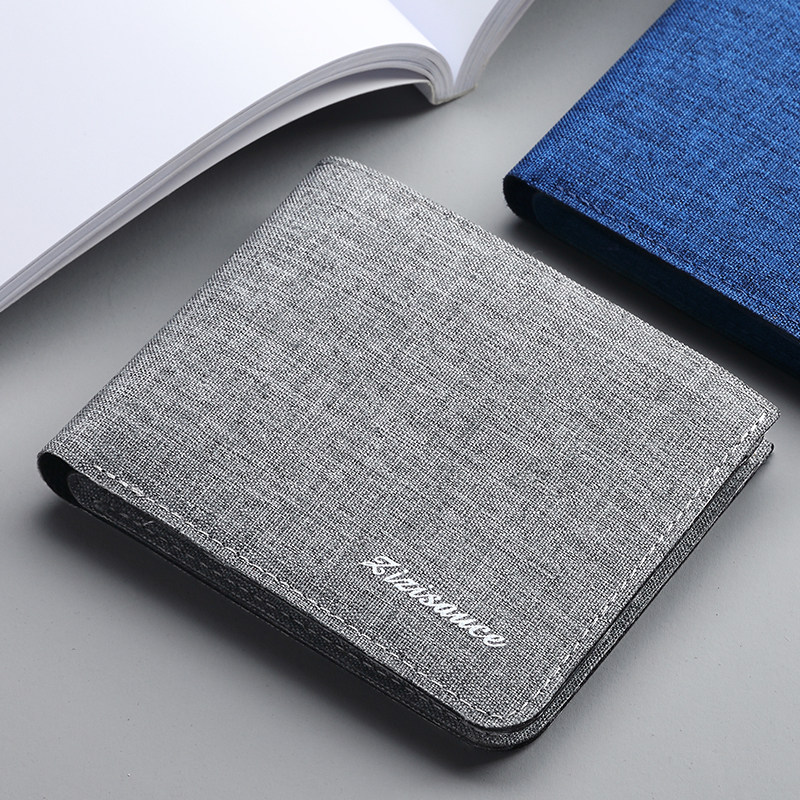 超薄男生钱包帆布短款版青年大学生男款皮夹折叠男士小巧钱夹简约