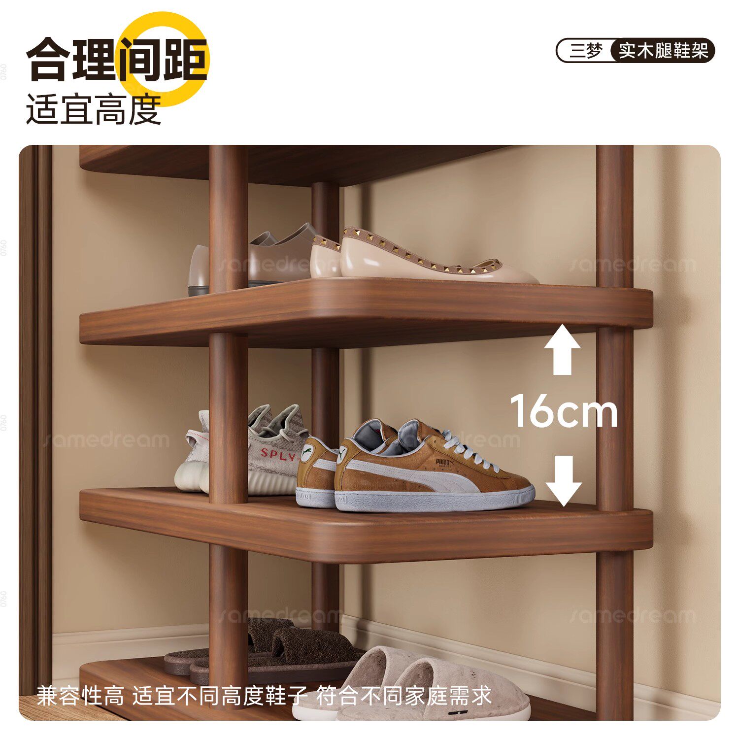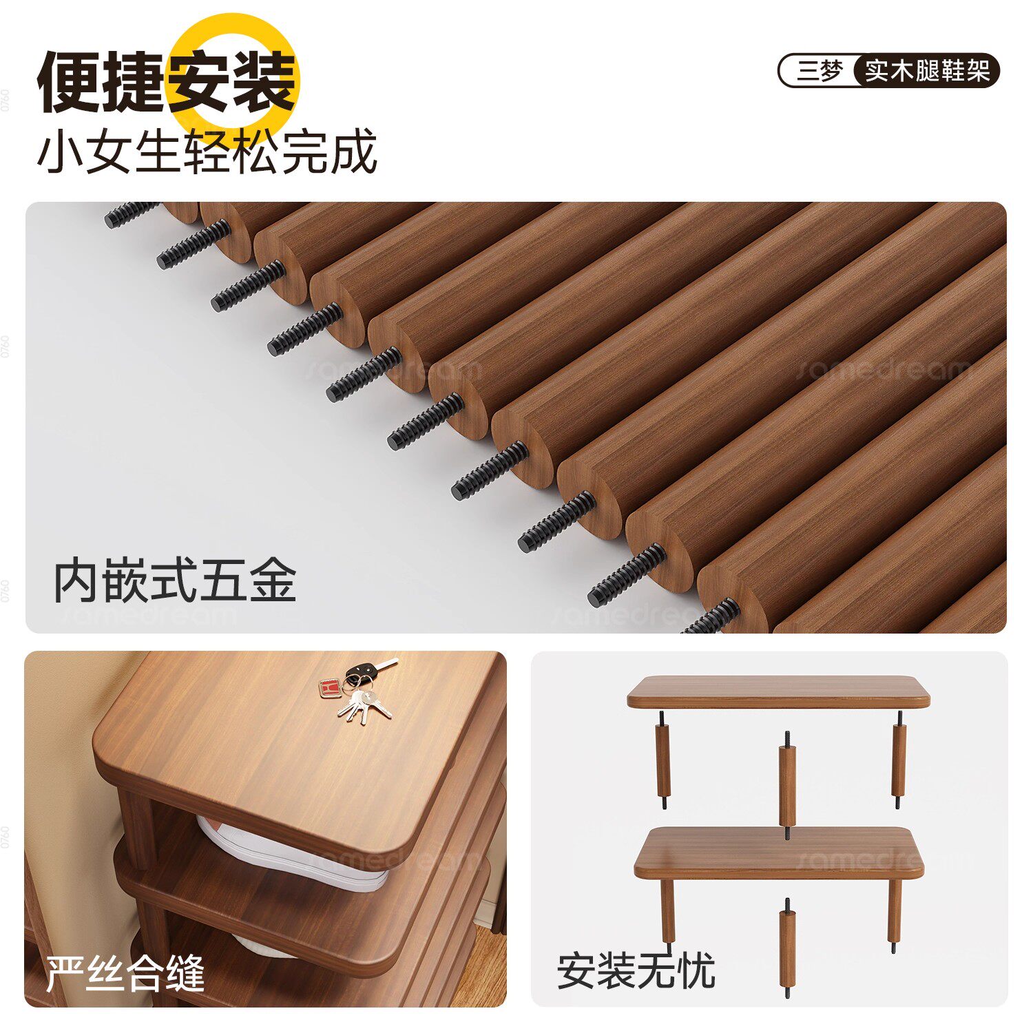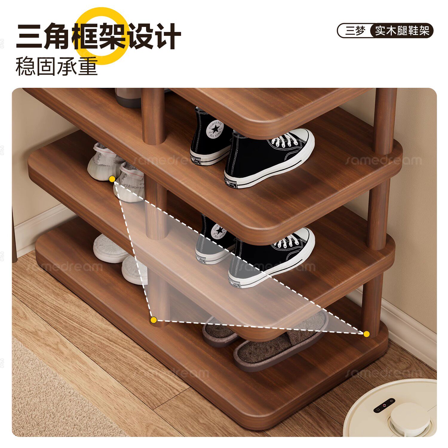 三梦实木腿鞋架子简易多层家用不占地方入户小窄门口一体靠墙鞋柜