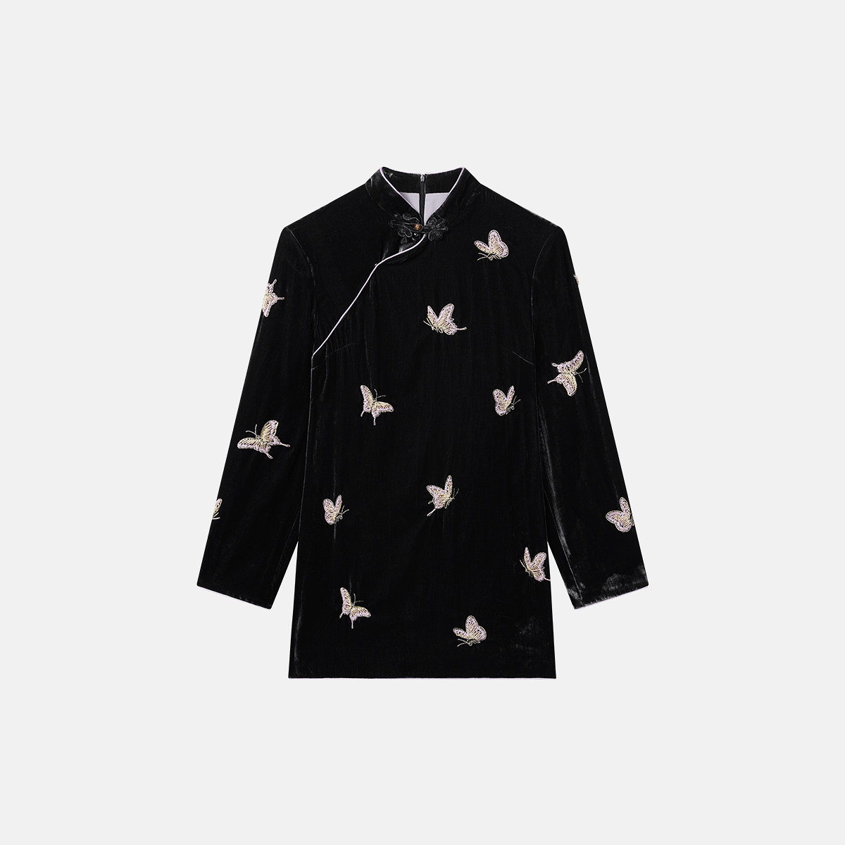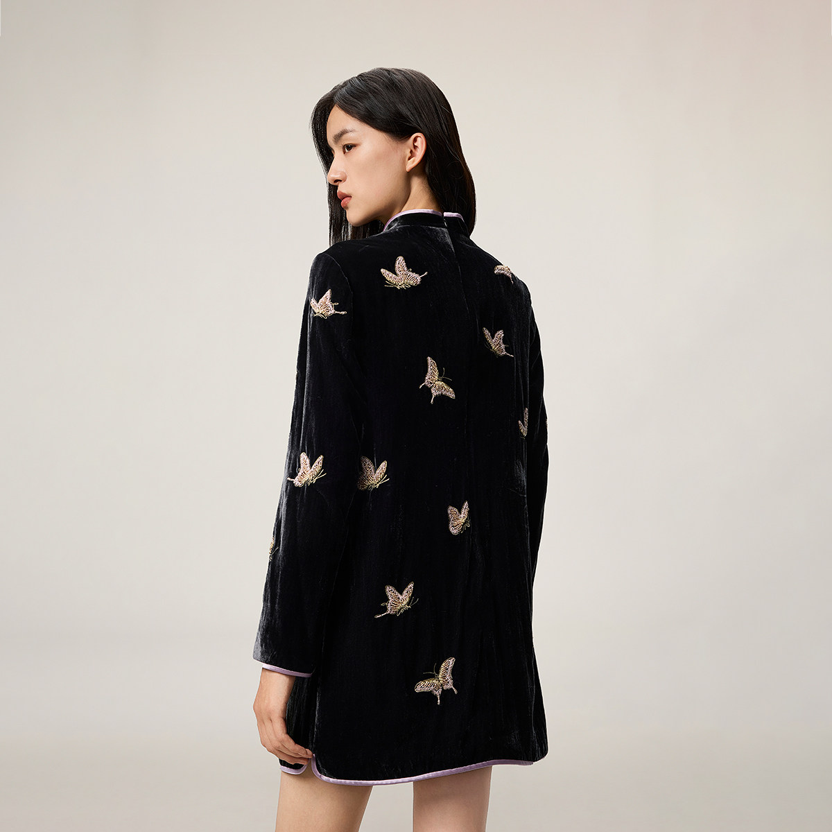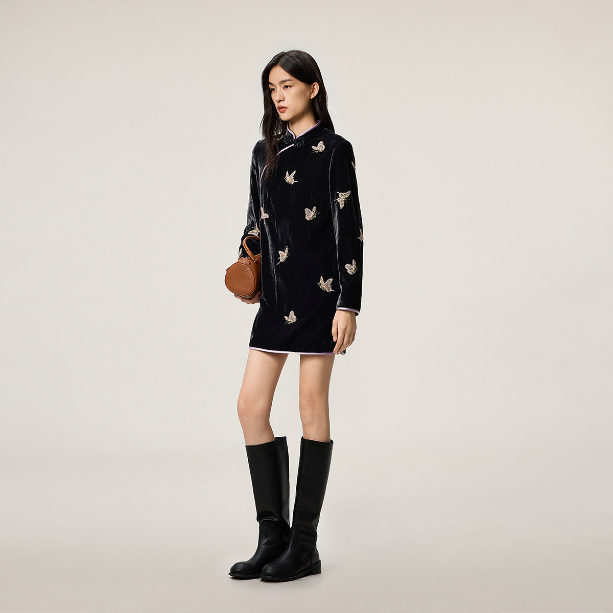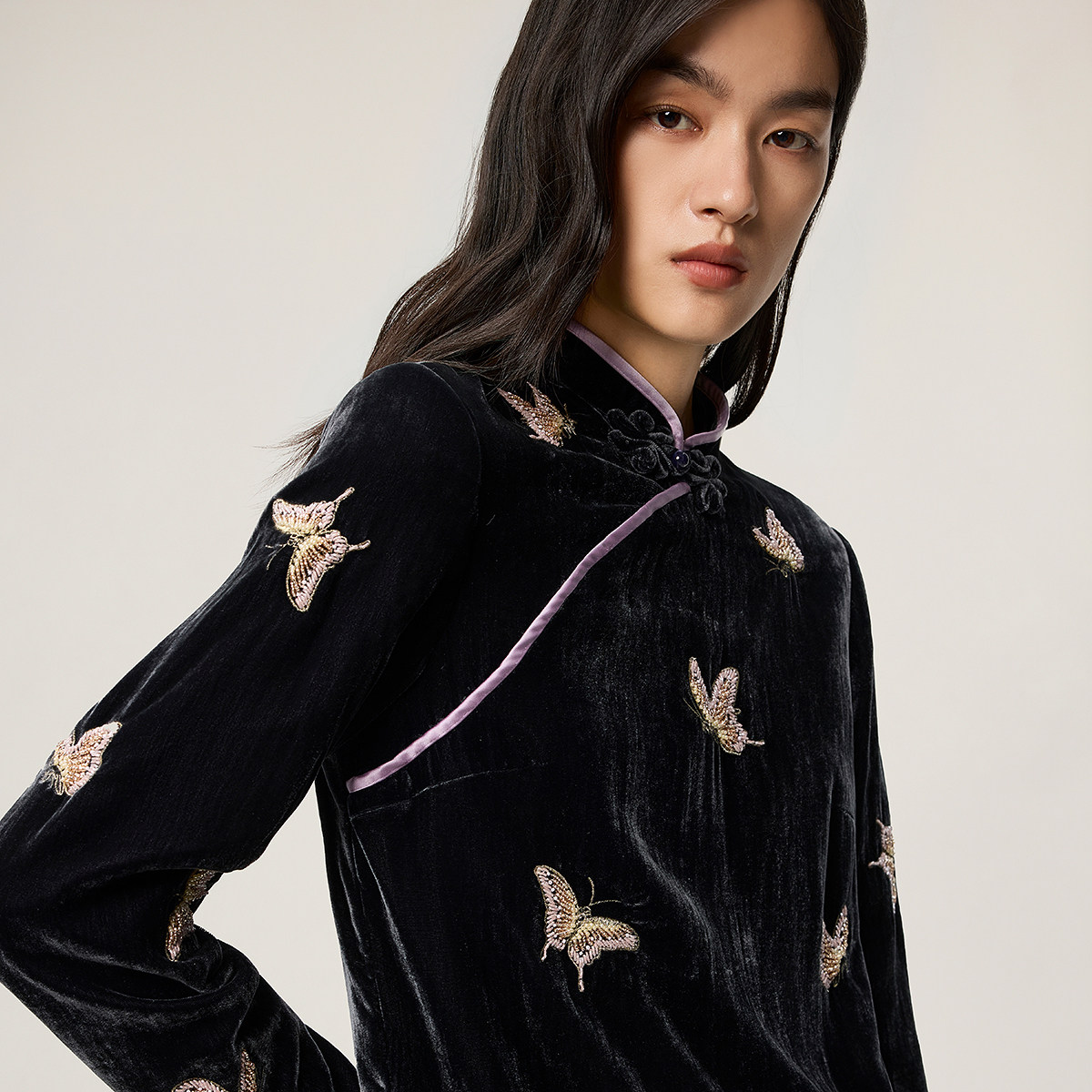 【新品】OCHIRLY欧时力新中式含真丝刺绣盘扣丝绒连衣裙新年26春