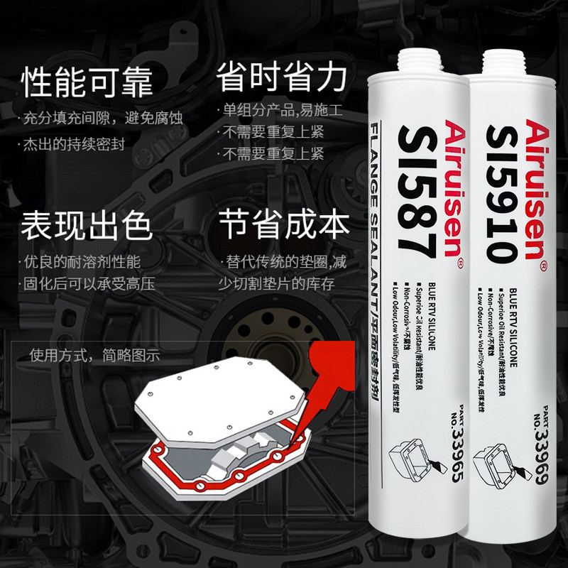 汽车密封胶水587平面密封剂蓝色5910 596防水耐高温发动机缸体填充金属法兰盘5699汽车维修598BK耐油强力胶水