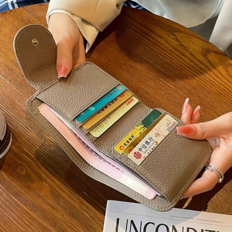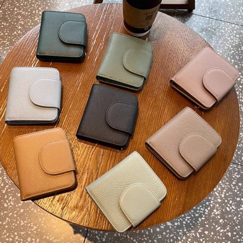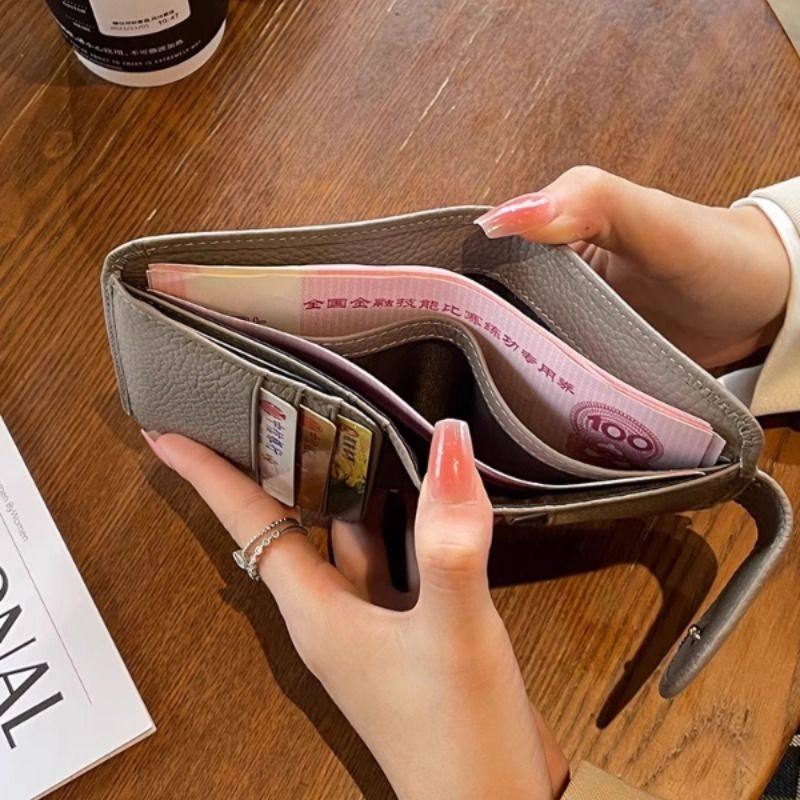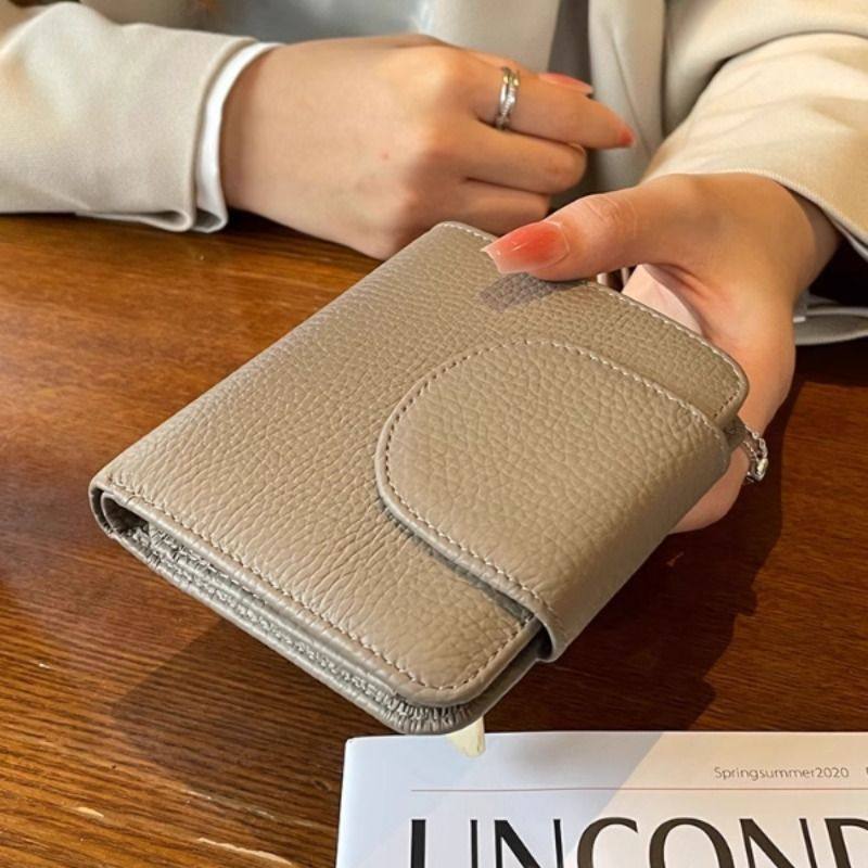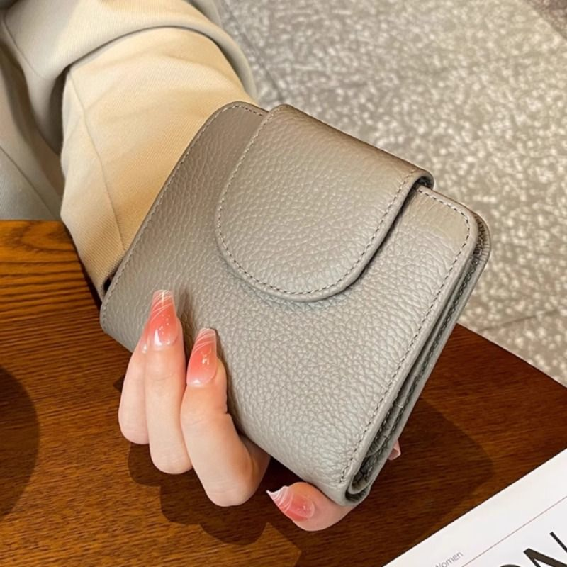 简约小众2025新款钱包女士短款真皮质感按扣竖款精致柔软折叠钱夹